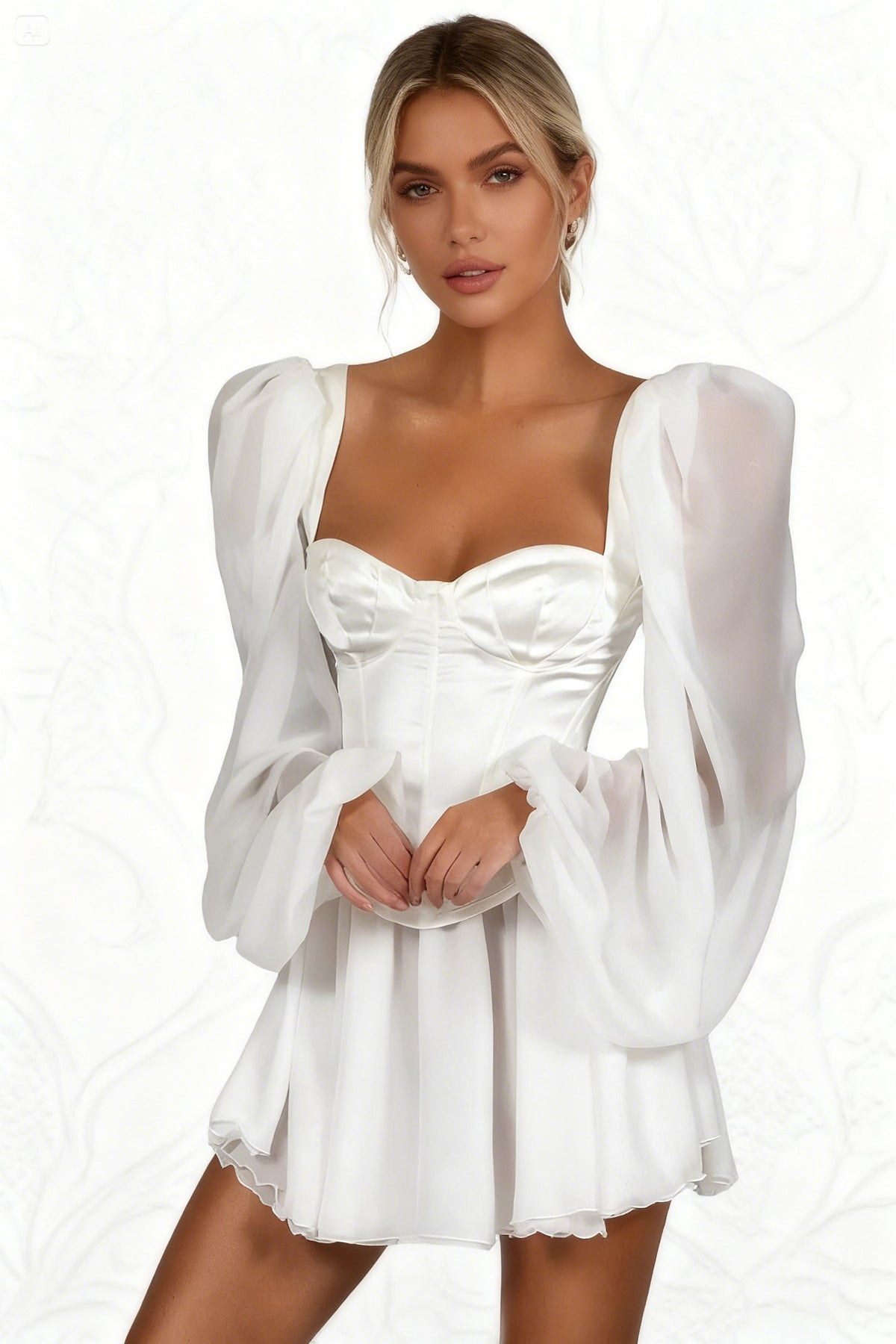 Available in a classic white color, this dress comes in sizes ranging from S to XL, catering to various body types and preferences. Whether you’re dressing up for a wedding or looking for a chic outfit for a night out, this versatile piece is sure to make a statement.
