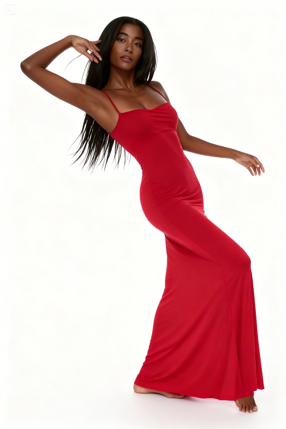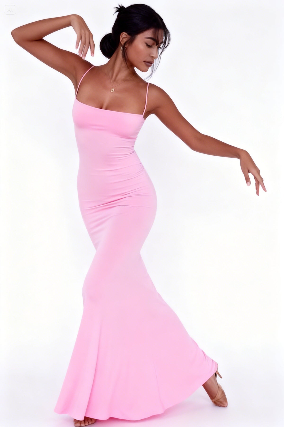 This sleek, stretchy bodycon maxi dress offers a stunning silhouette and ease of movement for dramatic dance performances.