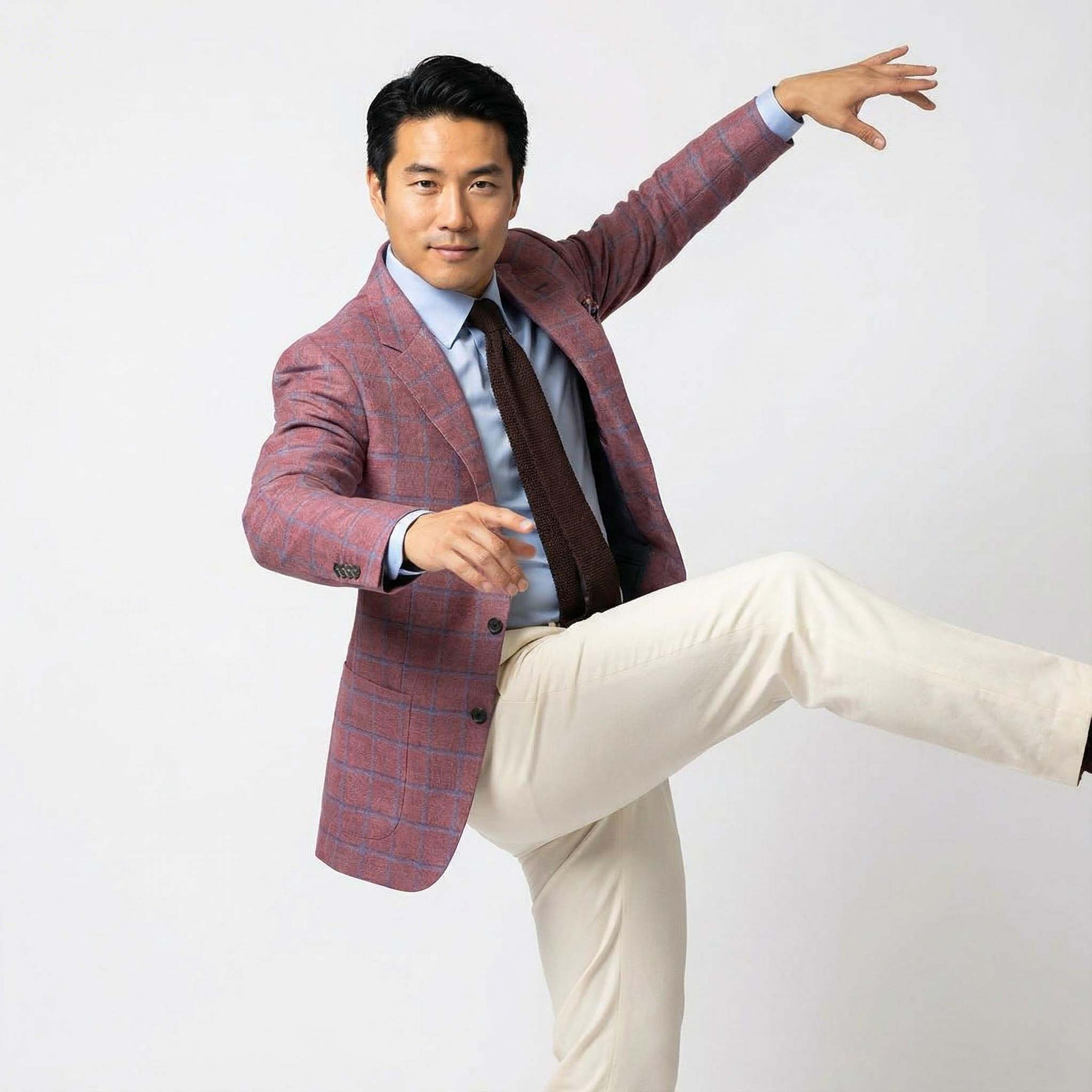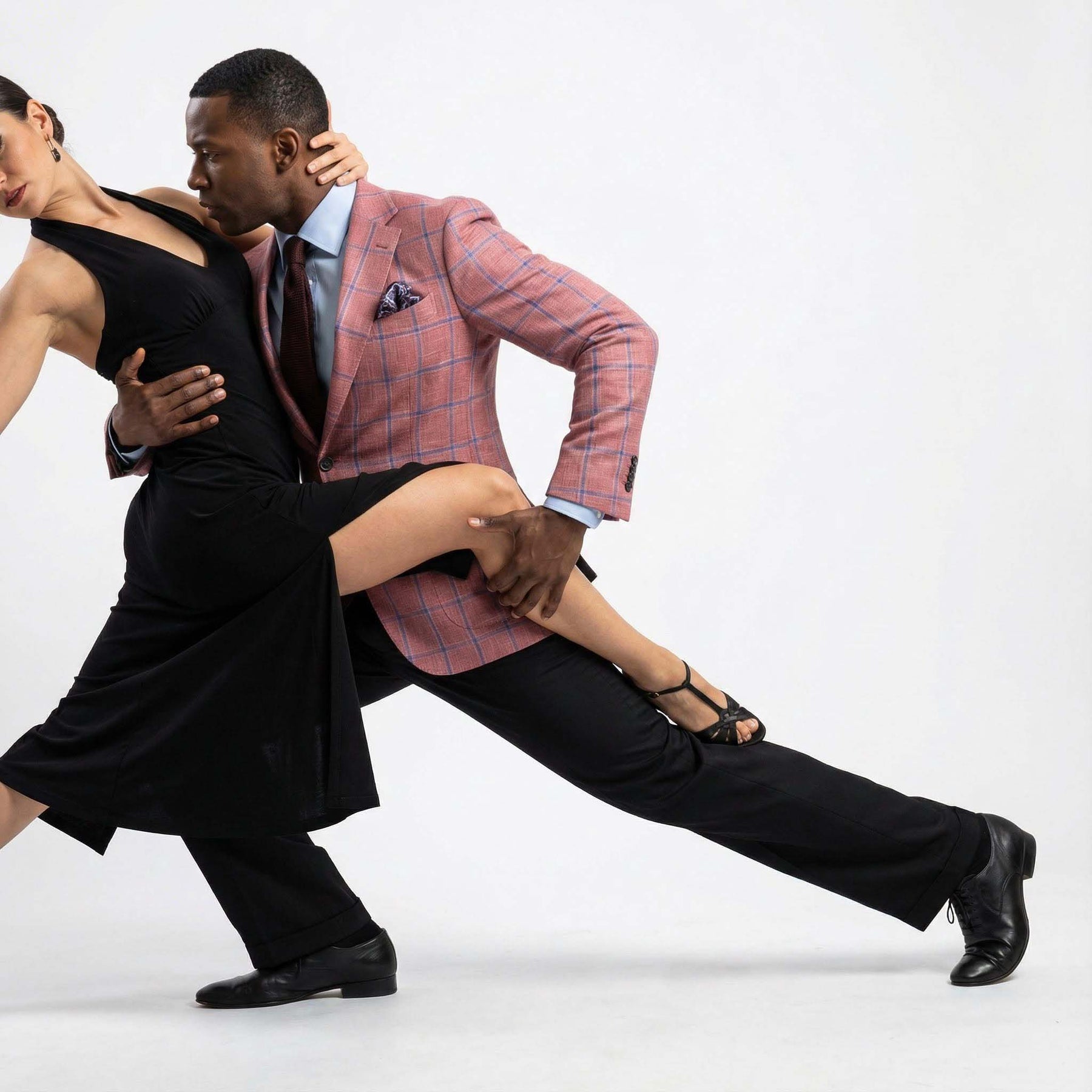 This sharp, slim-fit suit delivers a powerful stage look with movement-friendly style for professional dancers.