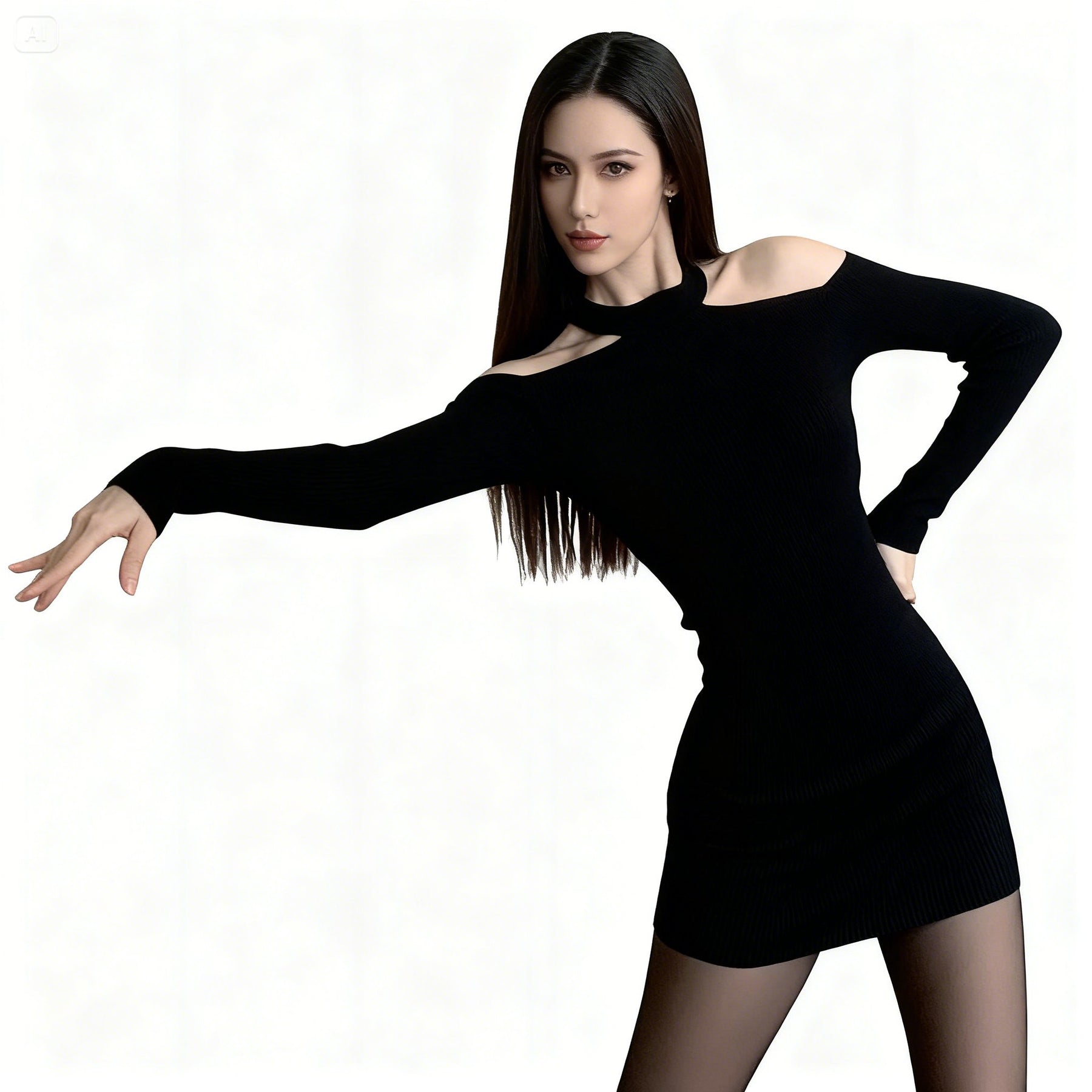 This sleek, off-shoulder knitted dress offers elegant style and cozy comfort, perfect for dance warm-ups or stylish downtime.