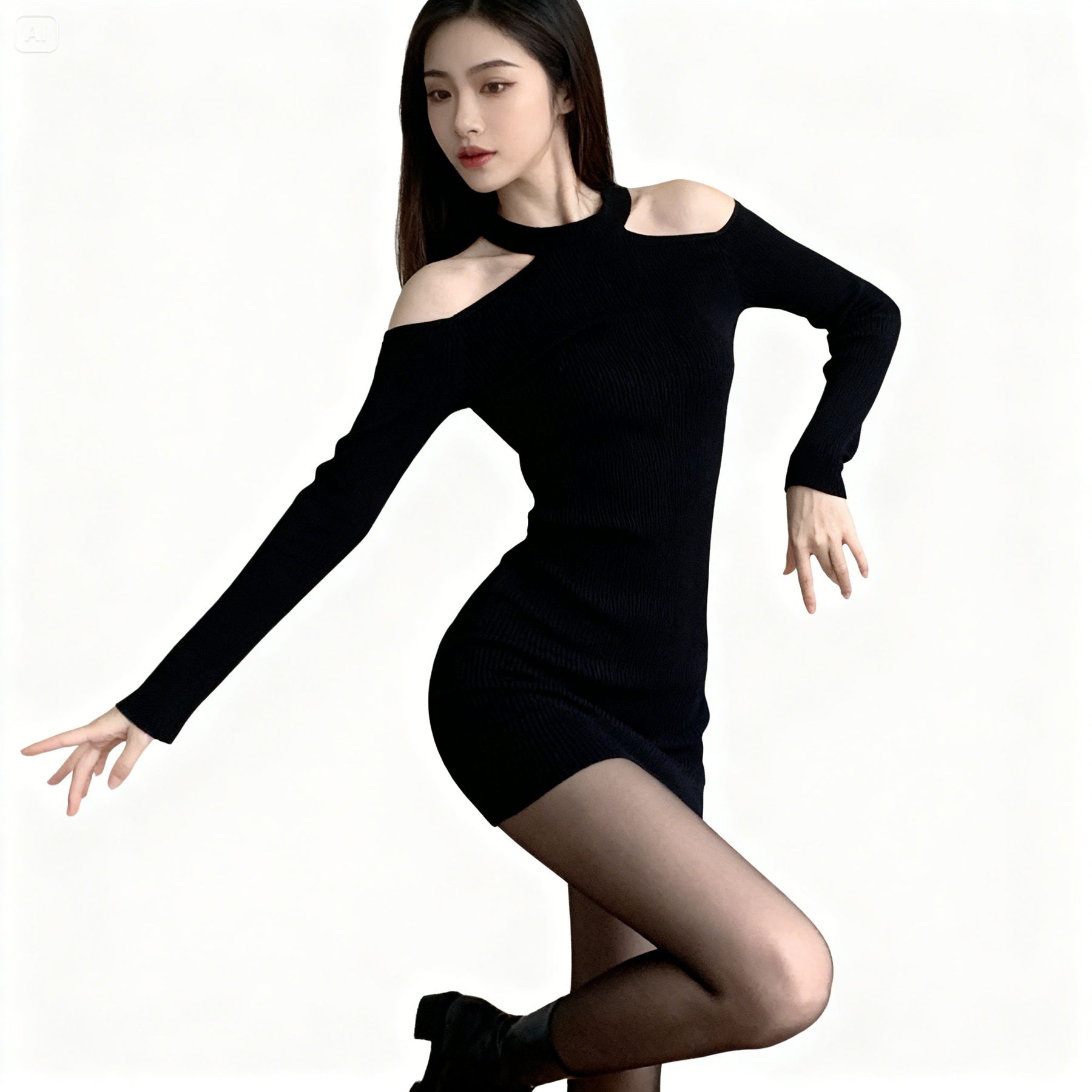 Embrace effortless elegance with our stunning off-shoulder knitted dress, a perfect blend of comfort and style. Designed in a chic European and American style, this basic piece comes in a timeless black color that flatters every figure.