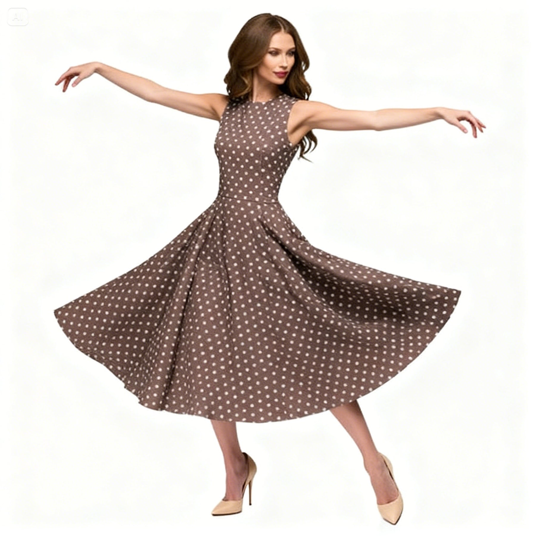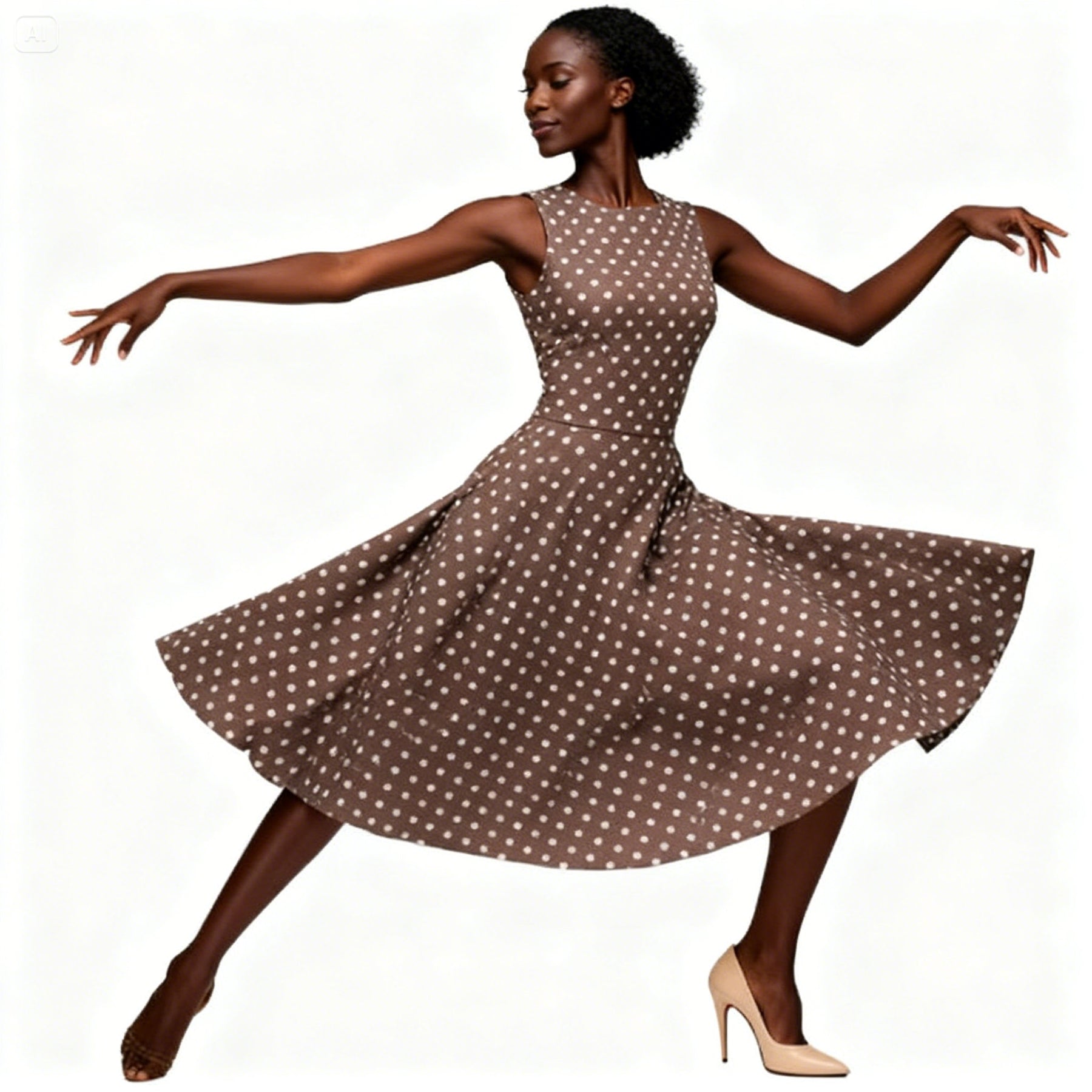 This vintage wave point maxi dress offers dramatic movement and elegance for stage performance.