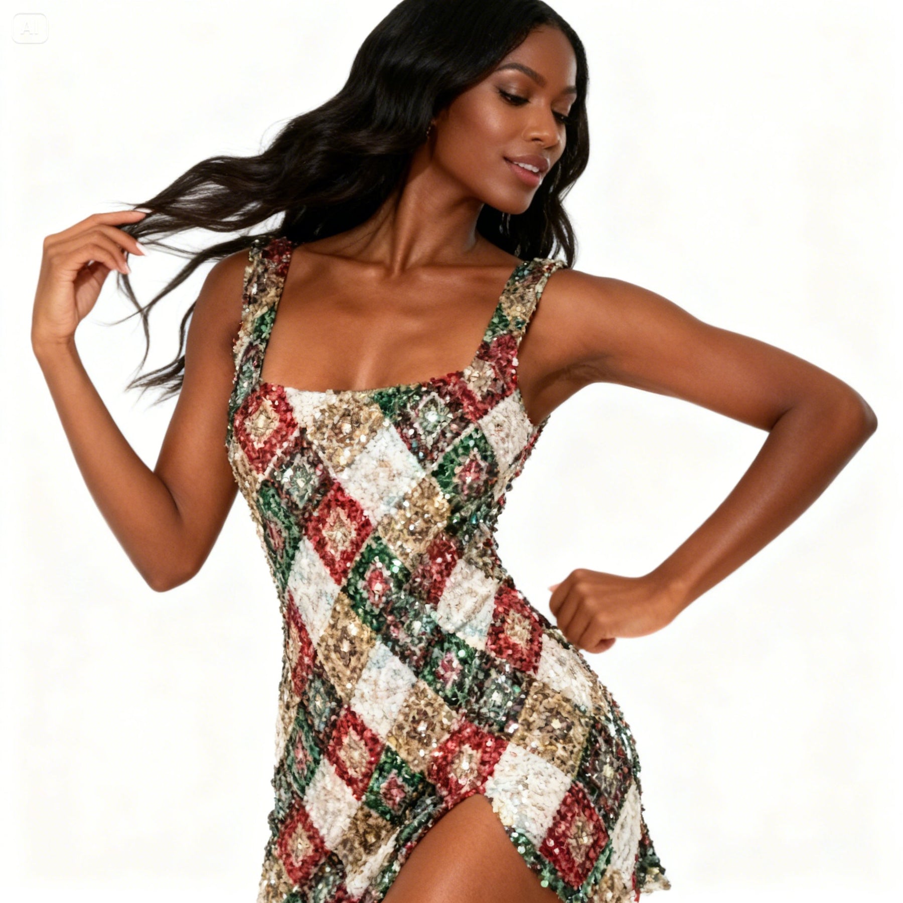 This sleek mini dress is perfect for dynamic movement and stunning stage presence.
