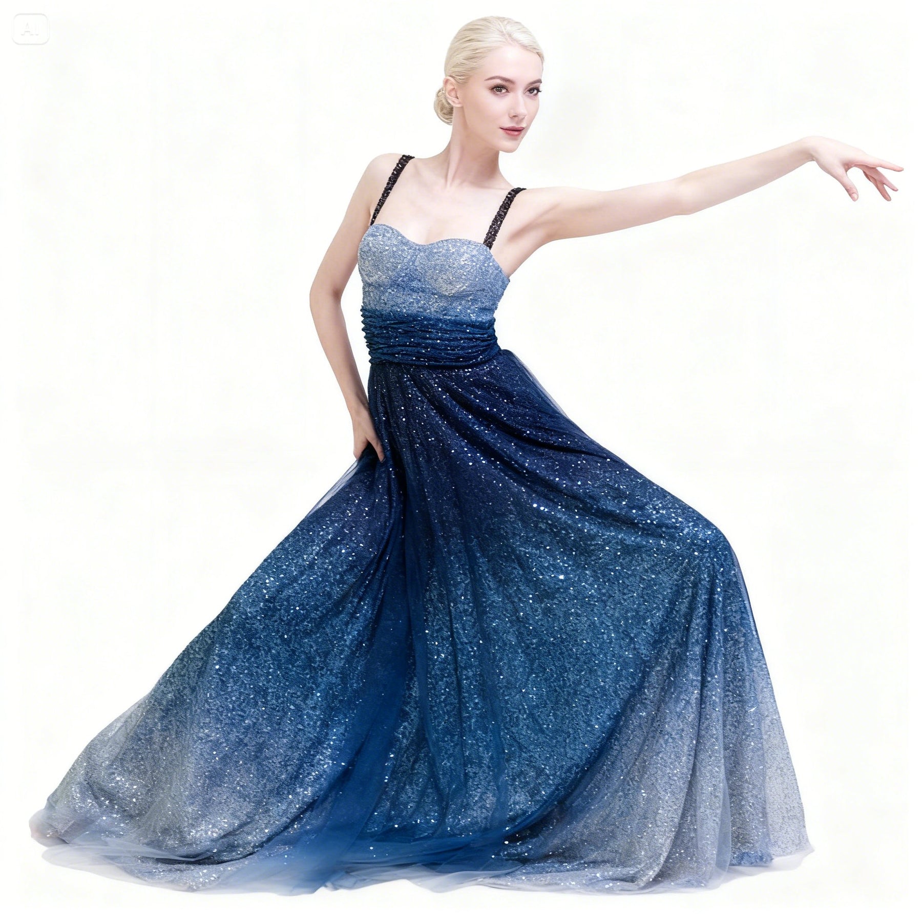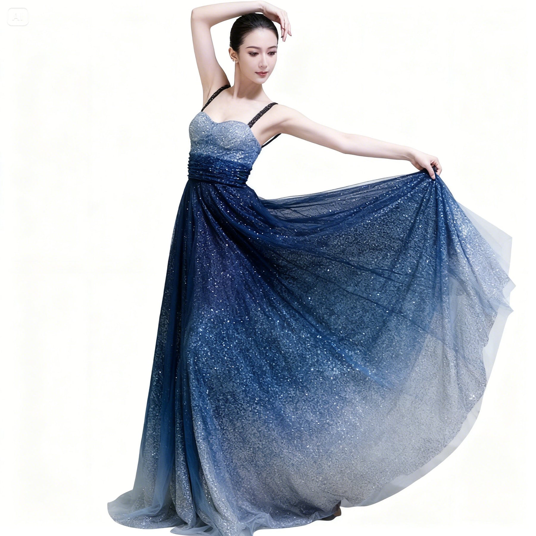 The elegant design showcases a beautiful waist-tail pendulum style, perfect for highlighting your curves. Available in a chic blue hue, this dress effortlessly combines sophistication with a touch of allure, making you the center of attention wherever you go.