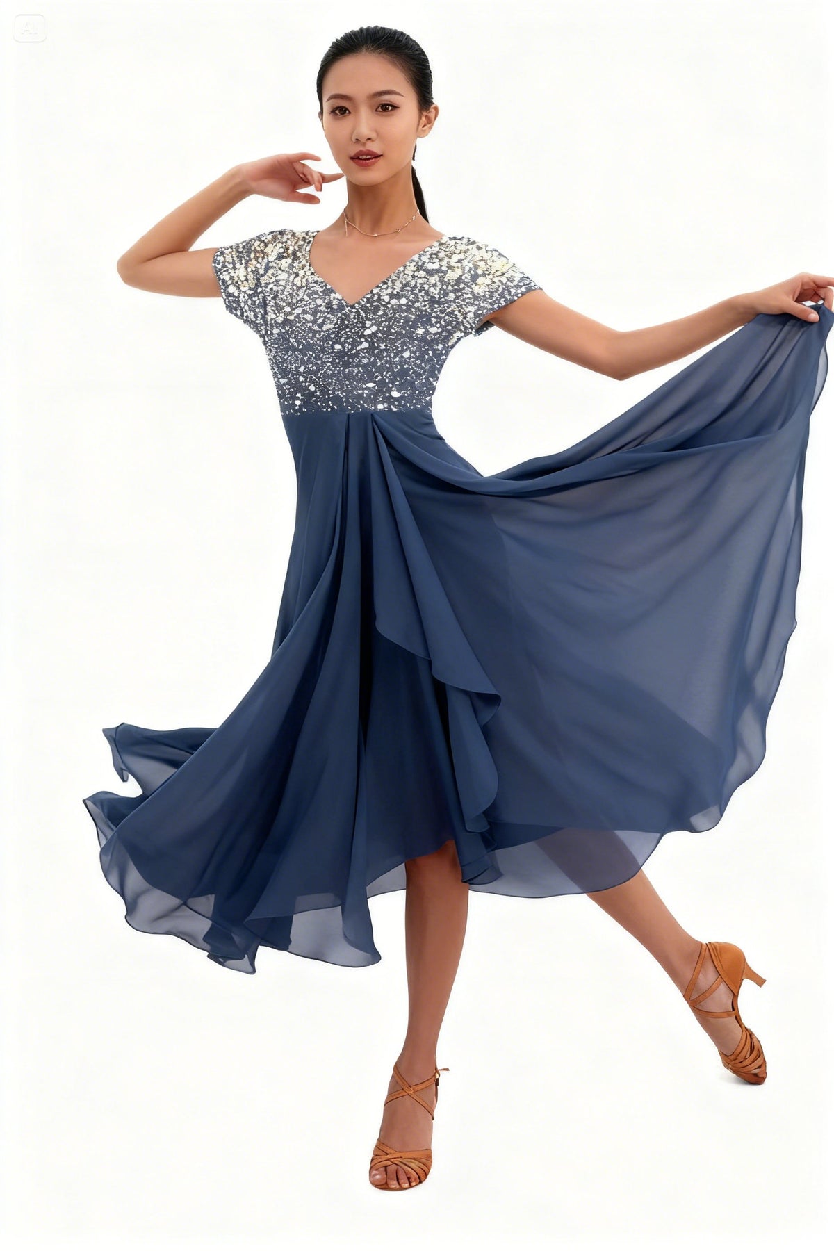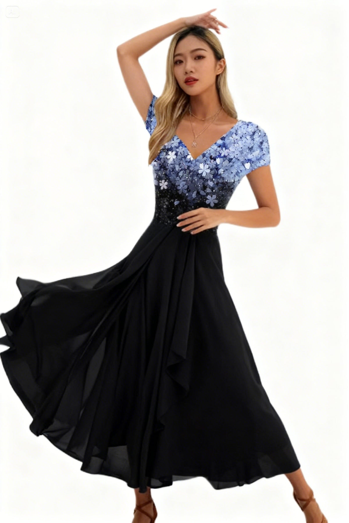 This lightweight chiffon dress flows beautifully, ideal for movement and performance.