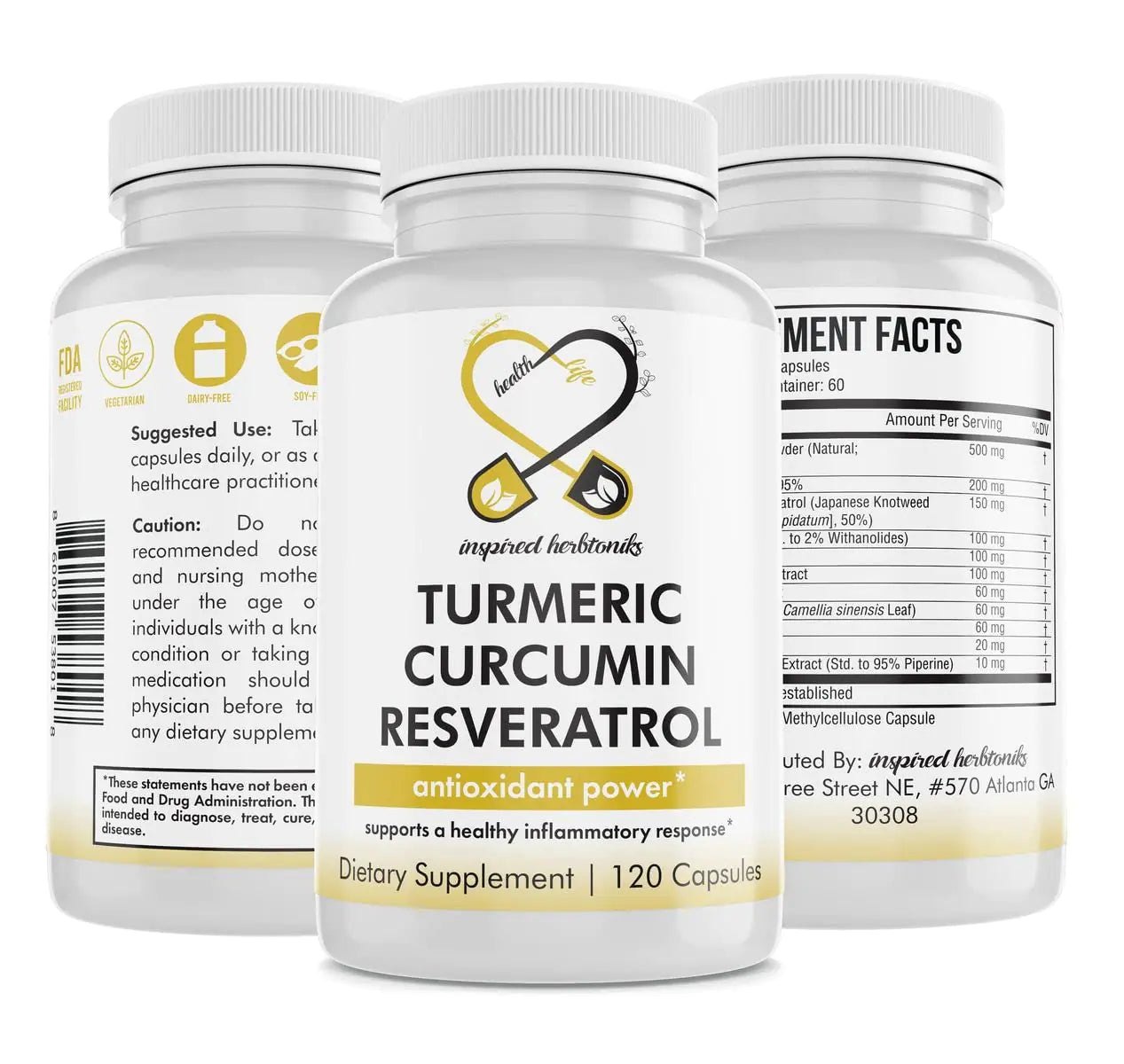 Inspired Herbtoniks Turmeric Curcumin Resveratrol Nutritional Supplement Antioxidant Properties Supports Good Inflammation and Immune System 120 Vegan Capsules