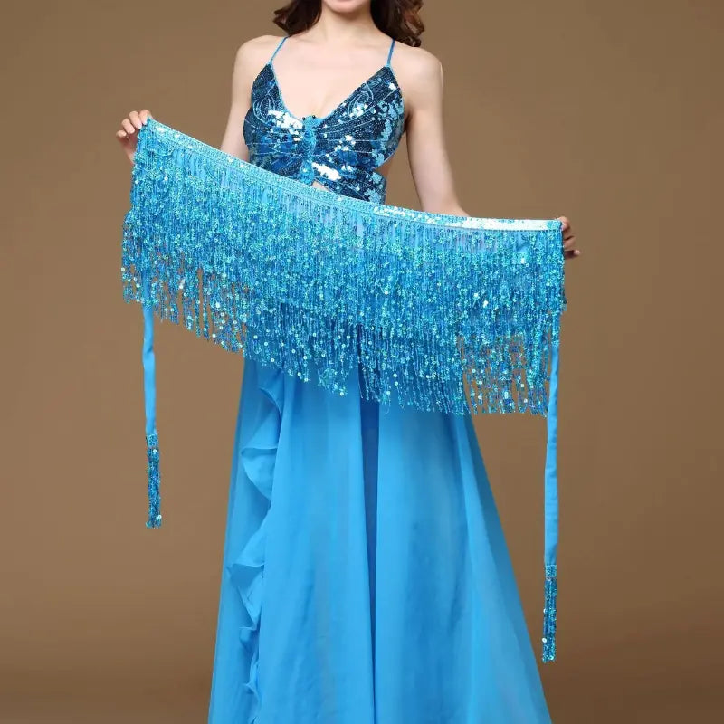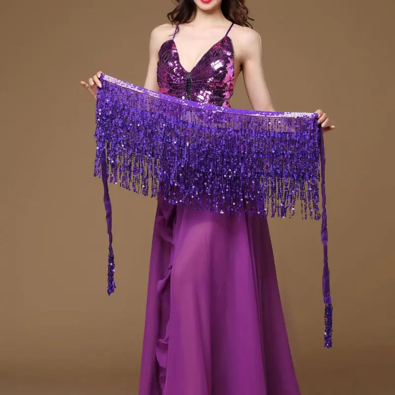Transform your dance attire with this dazzling waist scarf that not only enhances your style but also adds a playful flair to your belly dance moves. Whether you're performing on stage or enjoying a festive celebration, this waist scarf is sure to make you stand out.