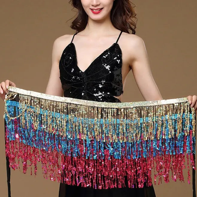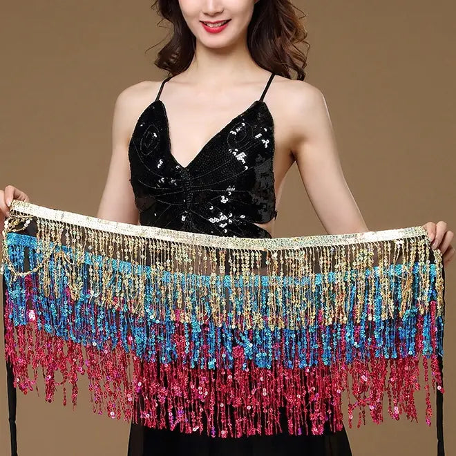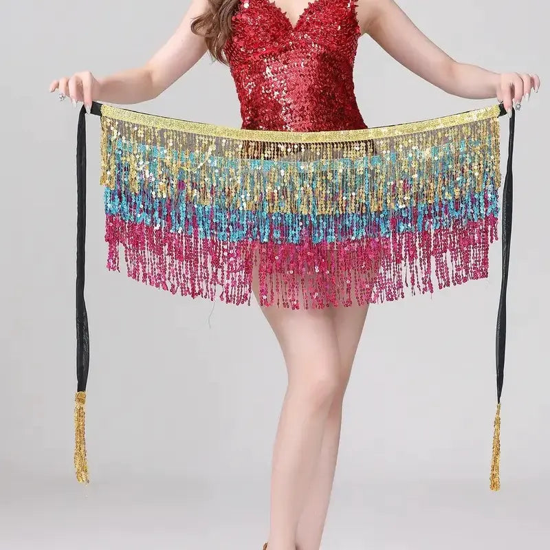 Unleash your inner dancer and make every performance unforgettable with our Four-layer Fringed Waist Scarf!