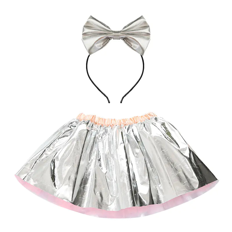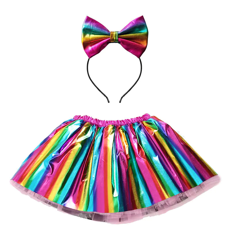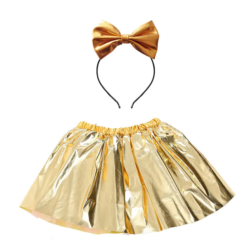 Available in a variety of vibrant colors, including light color, deep color, pink, silver, and gold, this skirt can be customized to match any outfit or mood. Each skirt comes with a stunning big bow headband in complementary colors, adding an extra flair to the look. Choose from sizes S, M, and L to find the perfect fit for your dancer.