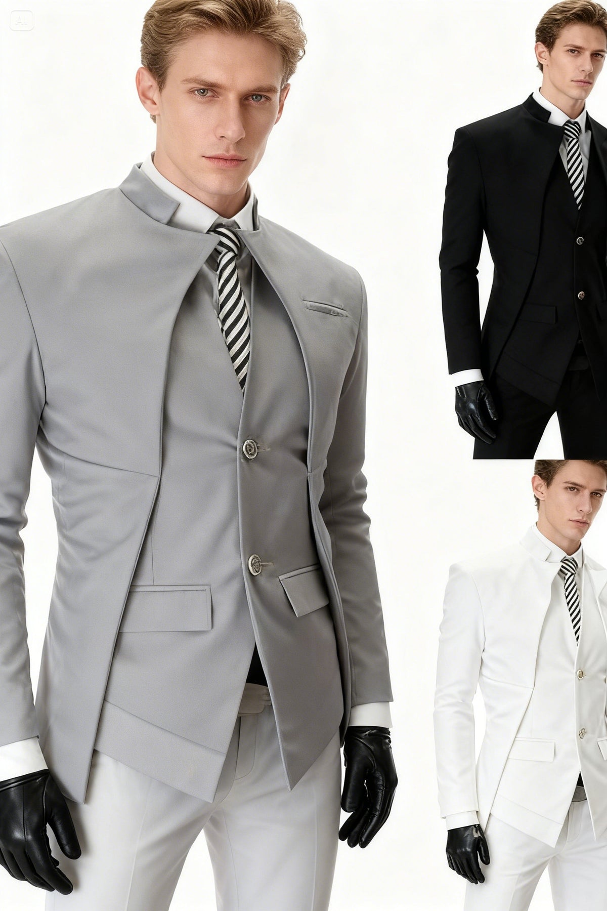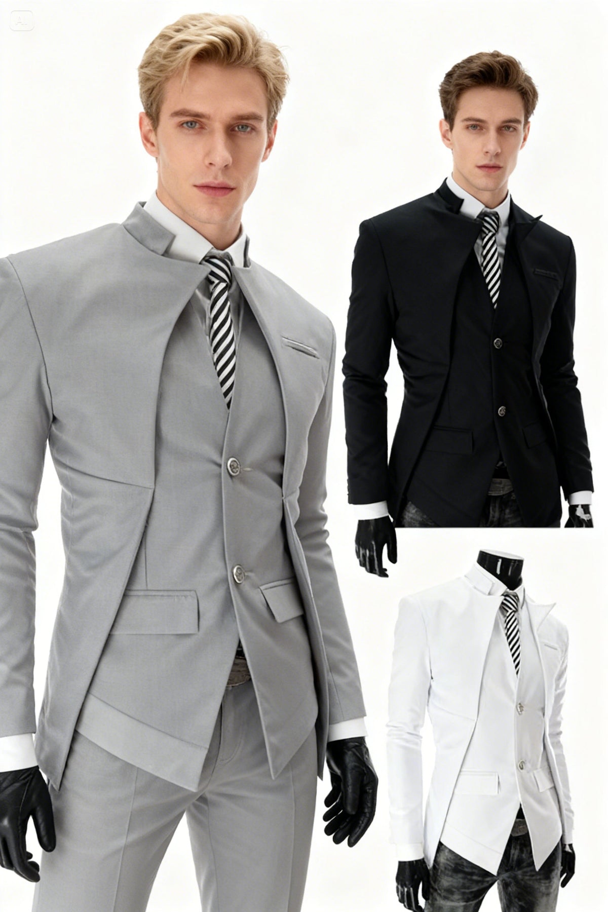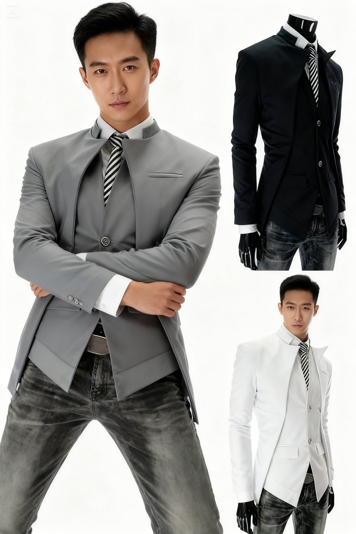 Check out the stunning visuals below to see the Asymmetrical Suit Jacket in action and envision how it can enhance your style.