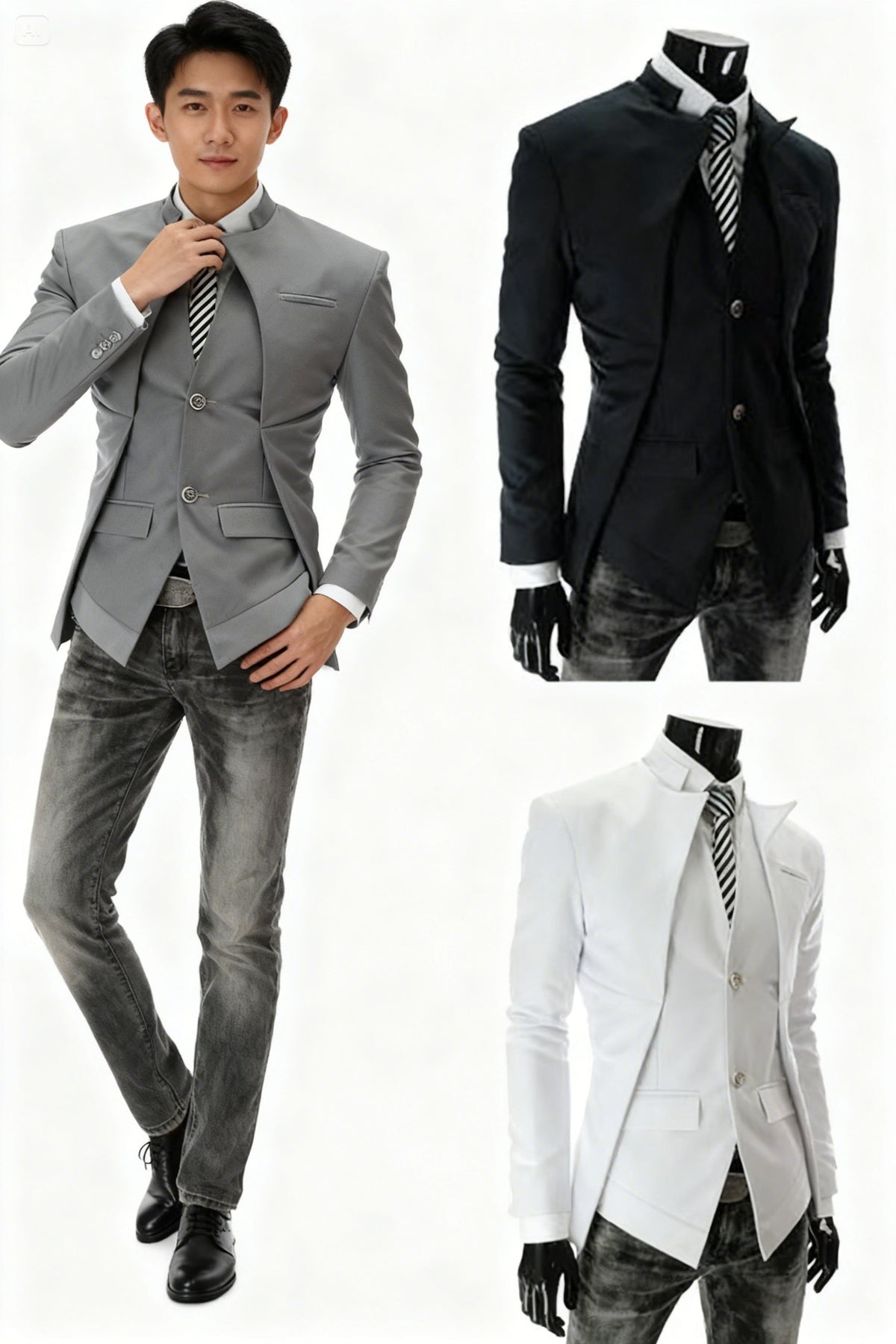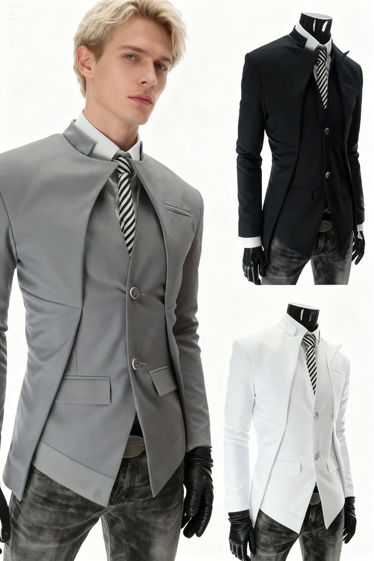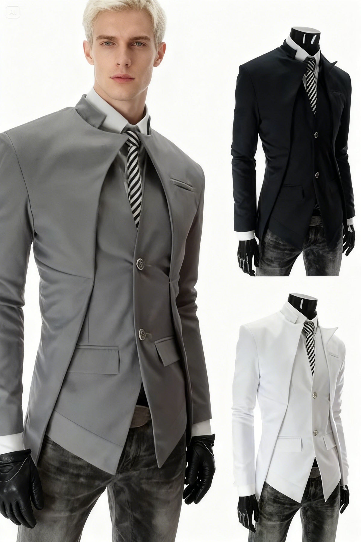 Whether you're dressing up for a formal occasion or looking to add a touch of elegance to your casual wear, this jacket is the perfect choice. Its unique asymmetrical design sets it apart from traditional suits, ensuring you make a bold statement wherever you go.