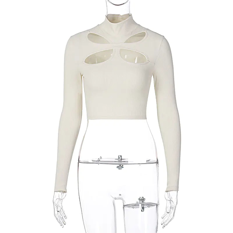 Featuring a sleek, solid color design, this top is perfect for layering or wearing alone. The long sleeves and cropped fit make it an ideal choice for transitioning through seasons, providing just the right amount of warmth without compromising on style. The high-temperature setting technology ensures that the top retains its shape and color, making it a durable addition to your wardrobe.