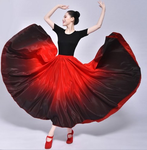 Elevate your dance practice and performances with our stunning Women Spanish Flamenco Skirt, designed to make a lasting impression. This long big swing skirt features a captivating gradient color that adds flair and vibrancy to any routine. Crafted from high-quality polyester fiber, it offers both comfort and durability, ensuring you look and feel your best while dancing.