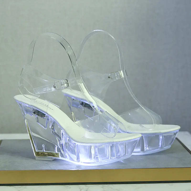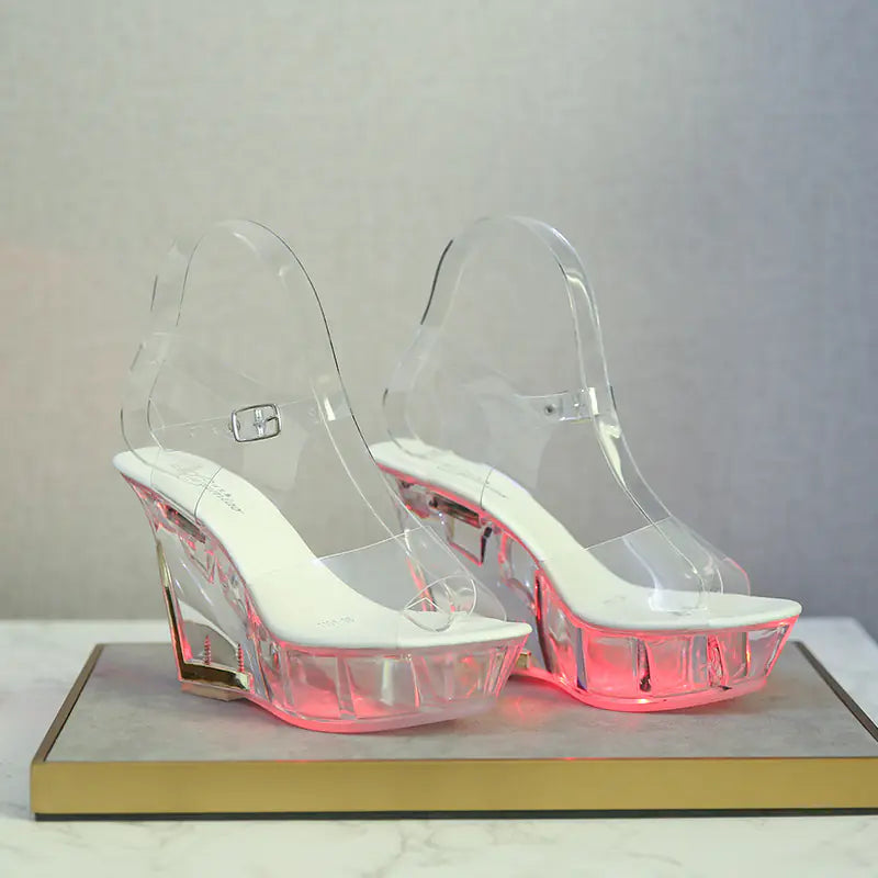 Step into the spotlight with these large-size pole dance shoes featuring a stable wedge heel and a dazzling crystal bottom.