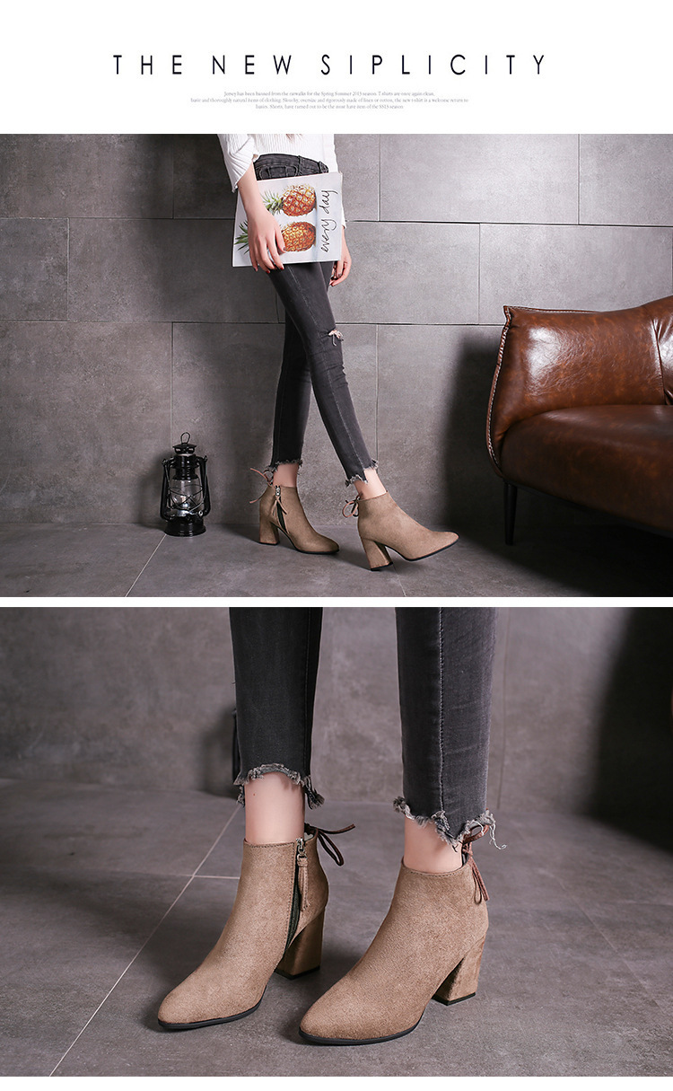 The pointed toe shape adds a touch of elegance, making these boots perfect for both casual outings and formal events. The thick heel not only enhances your height but also offers stability, allowing you to walk with confidence all day long.