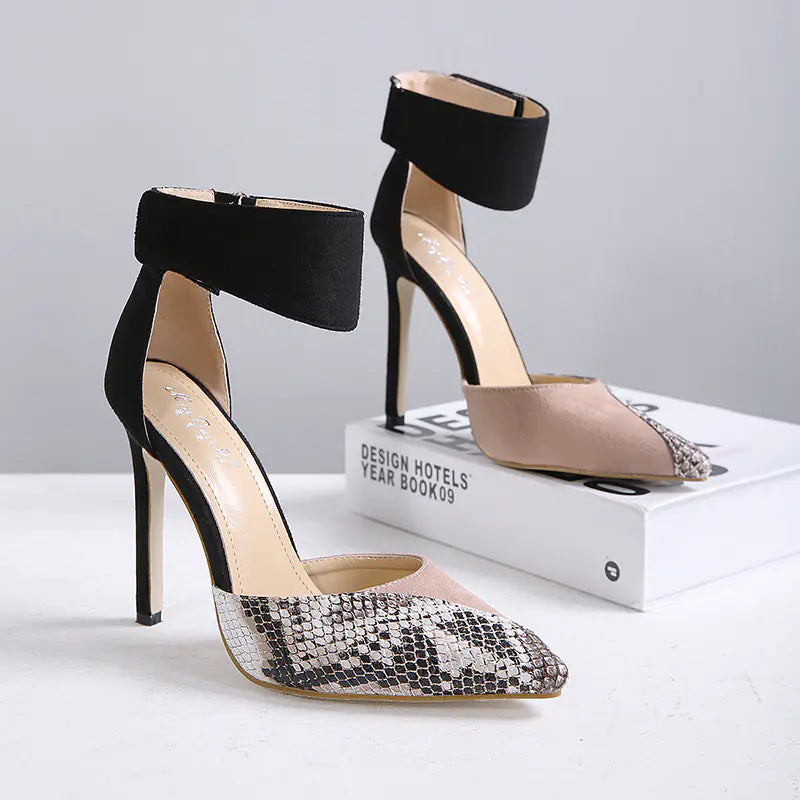 I was a little nervous about ordering shoes online. Sometimes the sizing is off, the pictures are highly touched up and what you get doesn't match visually. I was so happy that this was everything that was promised. First up, they're true to size. I wear a particular size, and these are a true fit. The heel is very stocky and you feel secure when standing or walking. The platform is a nice rise so there's no strain on the ankle. There's even a bit of cushion built in so you don't hit a solid chunk of shoe. The bottoms have rubber grips so they're not slippery like the leather-soled shoes. There's a stretchy bit of fabric in the ankle strap so if you don't want to fasten/unfasten it all the time, you can just slip them on. The snake print is very glam looking and it'll work with all sorts of colors, black, white, gray, beige, silver, gold, red, blue, etc. It's a very casual and yet dress-up occasion shoe.