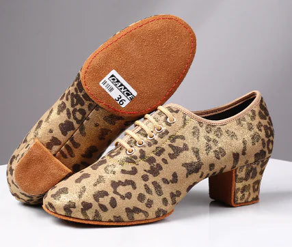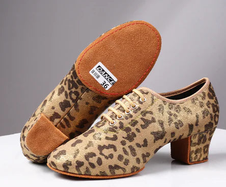 Featuring a stunning gold leopard print, these shoes not only provide comfort but also make a bold fashion statement. The leather sole ensures durability and superior grip on various surfaces, allowing you to execute your moves with ease and precision.