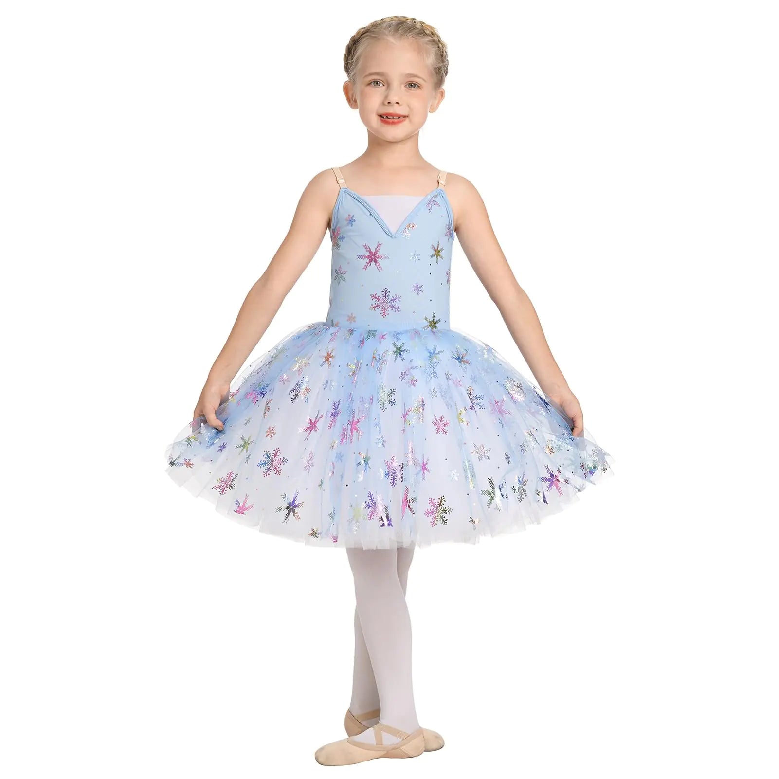 Ballet Leotard for Girls Sequin Snowflake Princess Performance Swan Ballet Dance Dress Camisole Leotard Skirt for Toddler Kid Christmas Ballerina Costume Dancewear Blue - Sequin Snowflake 11-12 Years