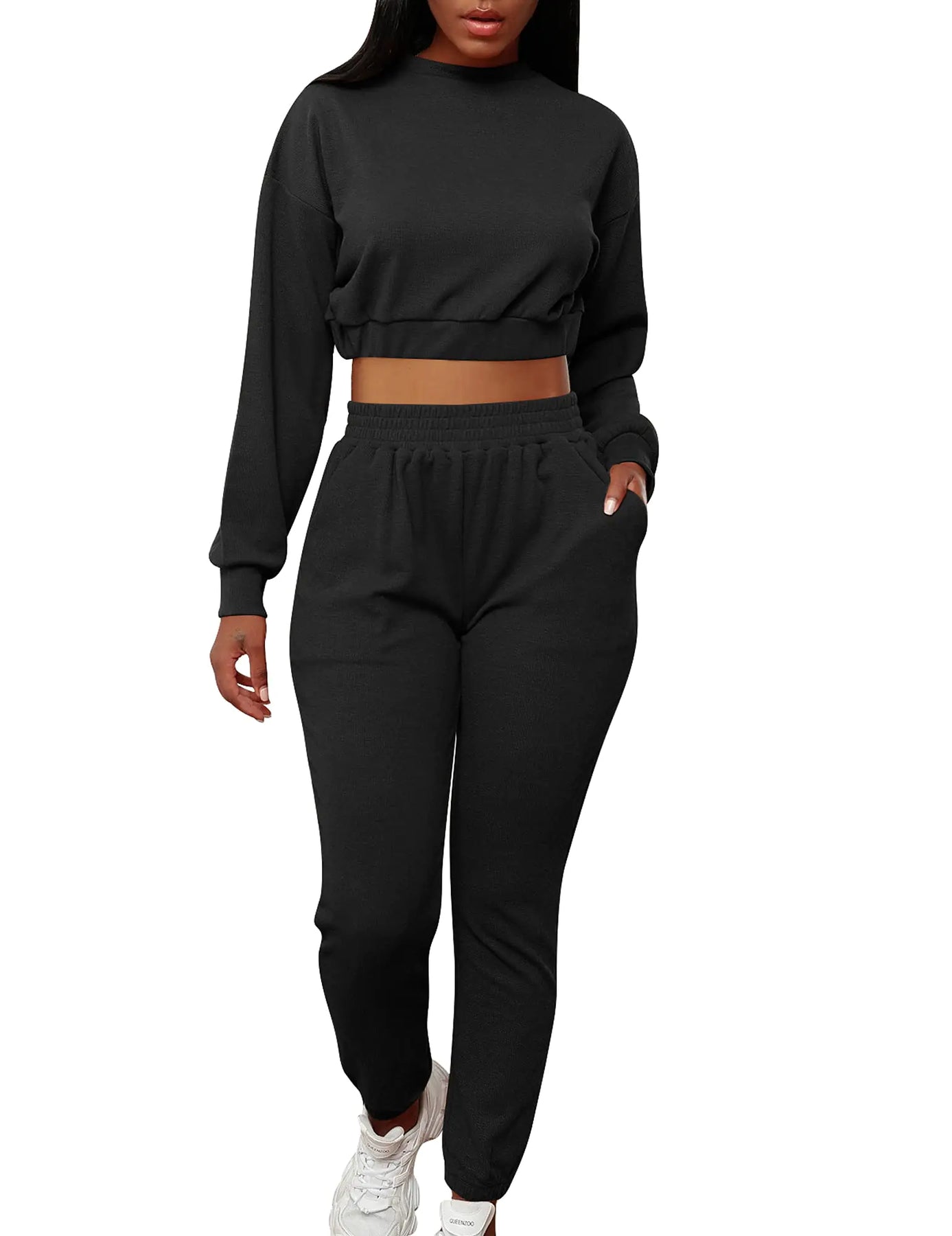 Mizoci Womens 2 Piece Outfits Lounge Jogger sets Long Sleeve Crop Top Pant Sweat Suit TracksuitSmallBlack