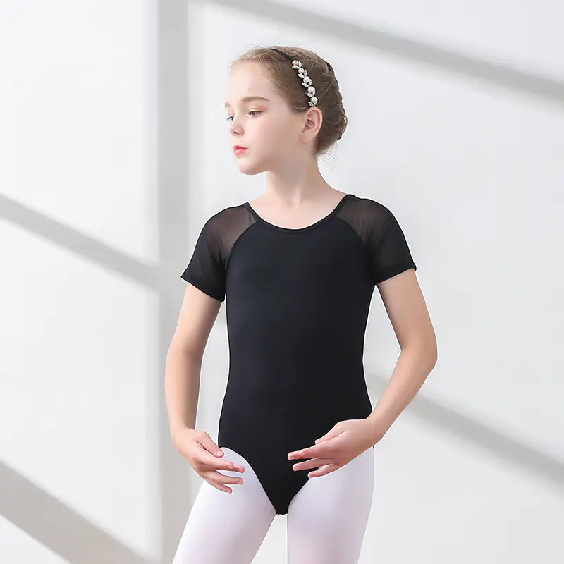 The short-sleeve design ensures freedom of movement, making it an ideal choice for dance sports, fitness activities, and everyday wear. Whether she's practicing her pirouettes or taking center stage, this outfit provides the support and style she needs to shine.