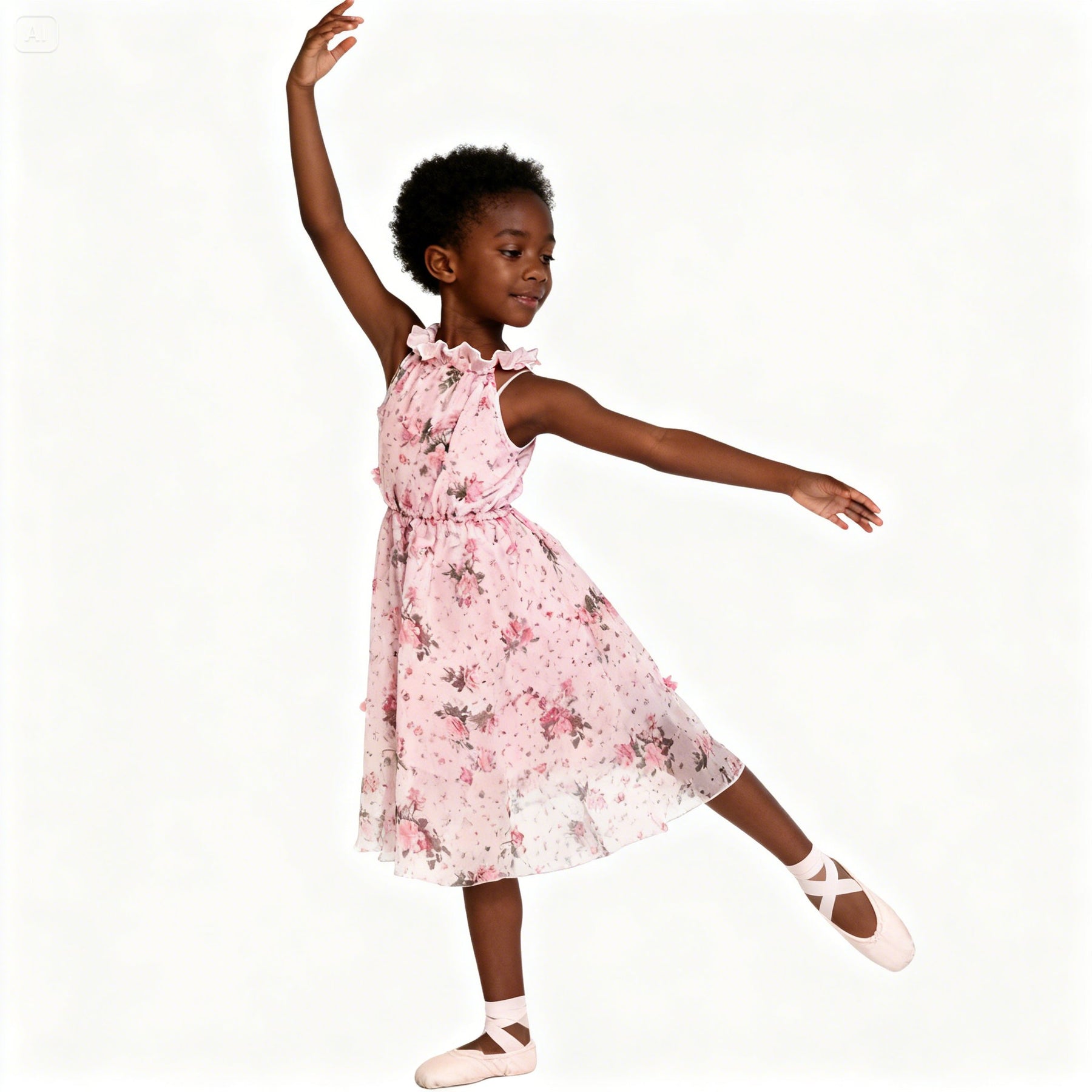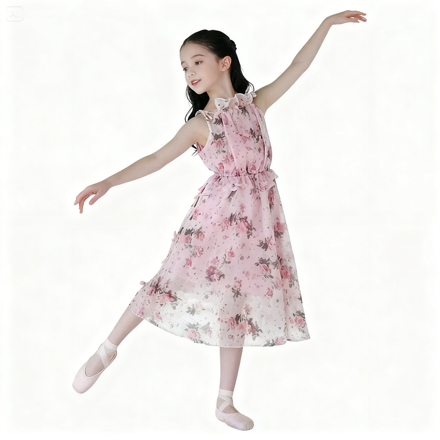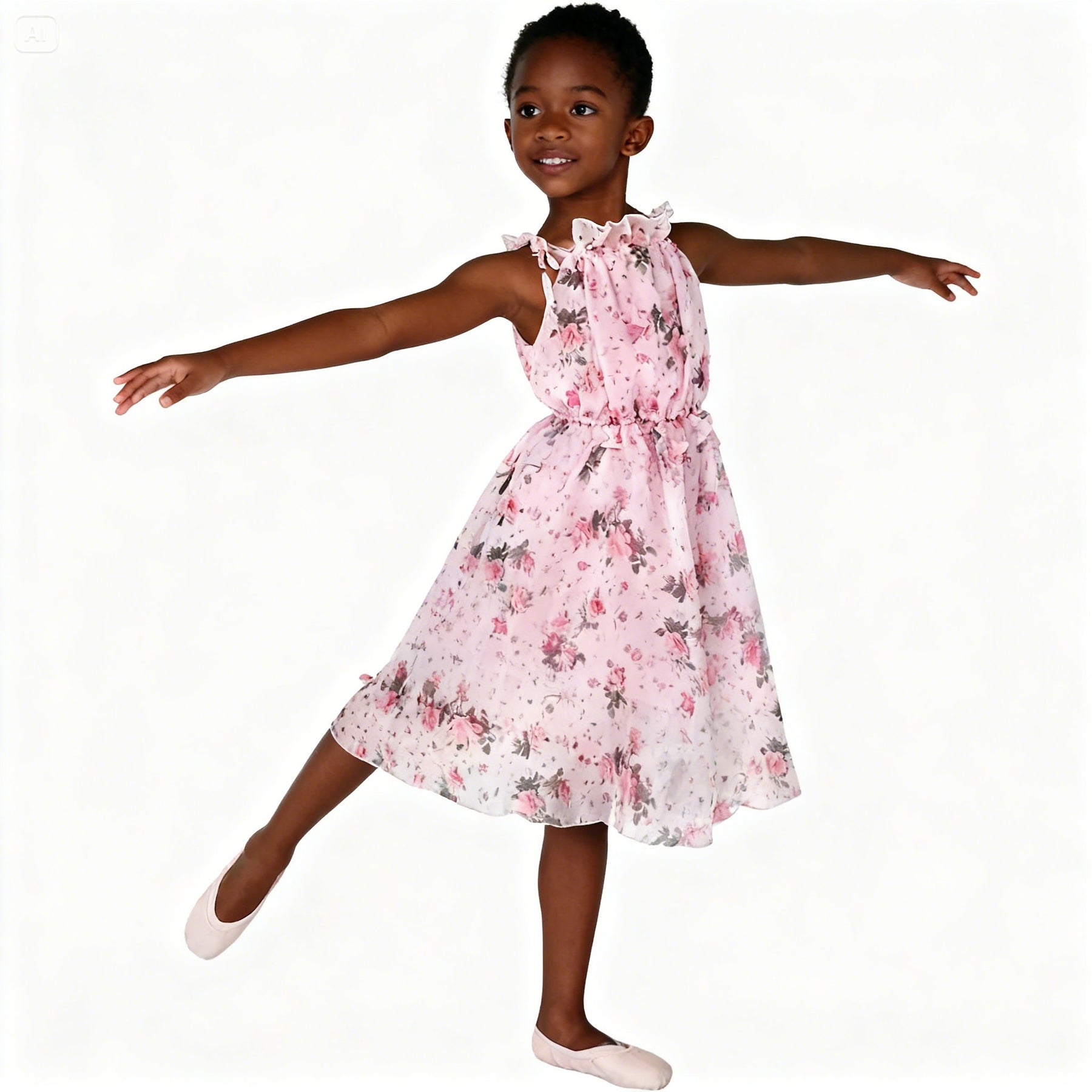 Embrace the spirit of summer with our stunning Bohemian-style dress designed specifically for young girls. This beautiful chiffon dress features a delightful floral pattern that captures the essence of sunny beach days and vibrant outdoor adventures.