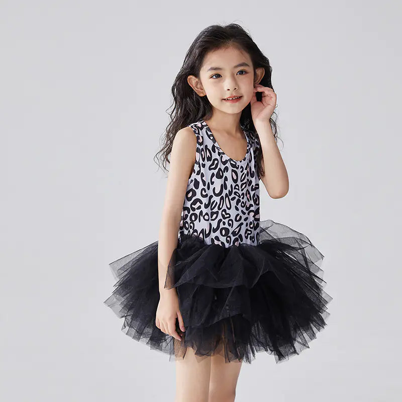 This enchanting dress is suitable for a range of heights, available in sizes from XS (90CM) to L (120CM), making it perfect for growing dancers. The adorable grid element adds a touch of classic charm, while the variety of colors and styles, including Bare Pink, Black, Leopard Print, and more, ensures that every little girl can find her perfect fit.