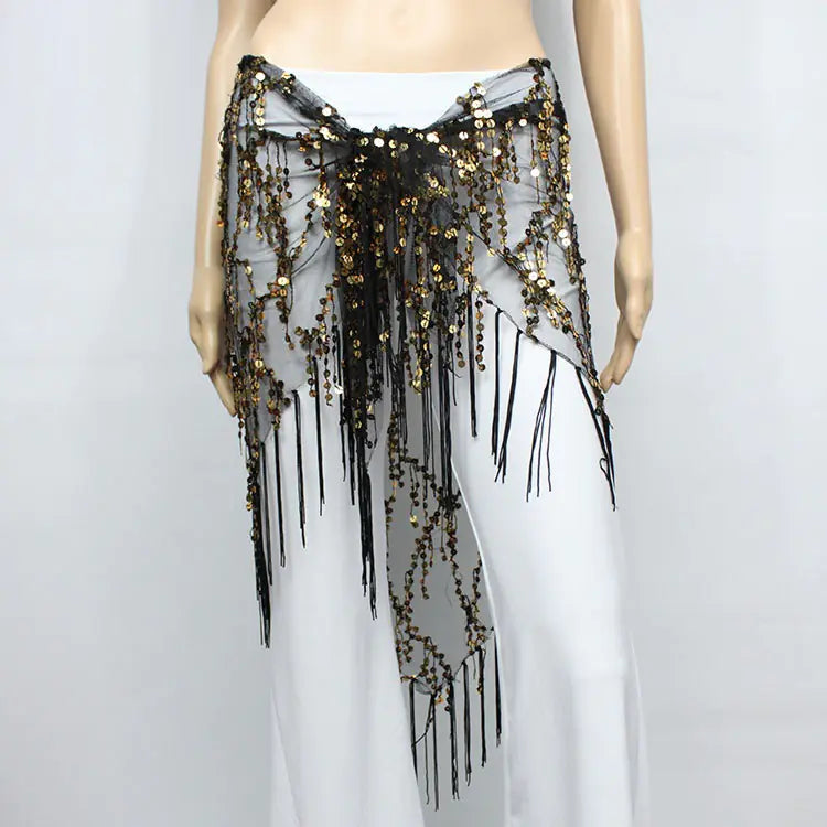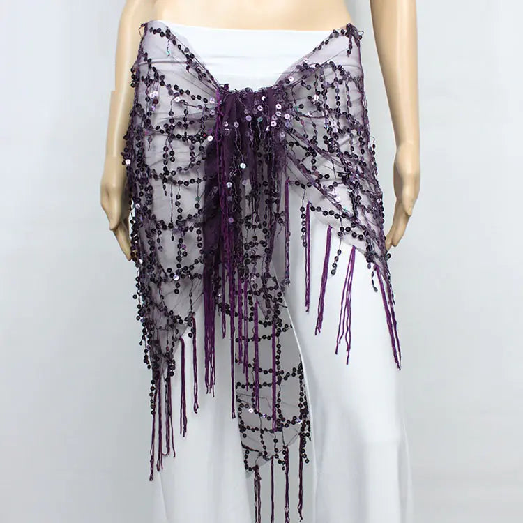 Elevate your dance performance with our stunning Belly Dance Practice Sequins Triangular Binder Waist Scarf. Designed for both men and women, this versatile accessory is perfect for adding a touch of sparkle to your belly dance routines. Made from high-quality thin mesh sequins and durable polyester fiber, this scarf is not only stylish but also comfortable to wear throughout the year, whether it's spring, summer, autumn, or winter.