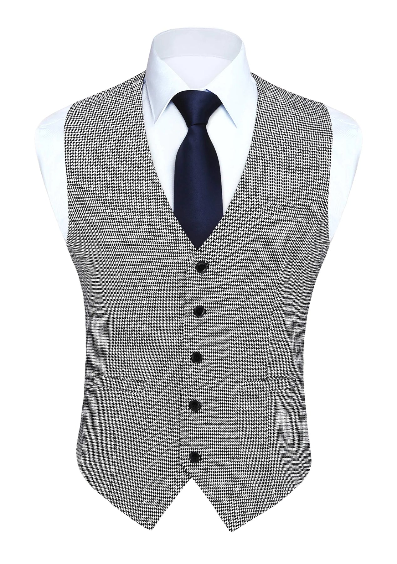 HISDERN Mens Suit Vest Business Formal Dress Vests Waistcoat Slim Fit Cotton Plaid Vest for Suit or Tuxedo with Pockets Wedding Houndstooth