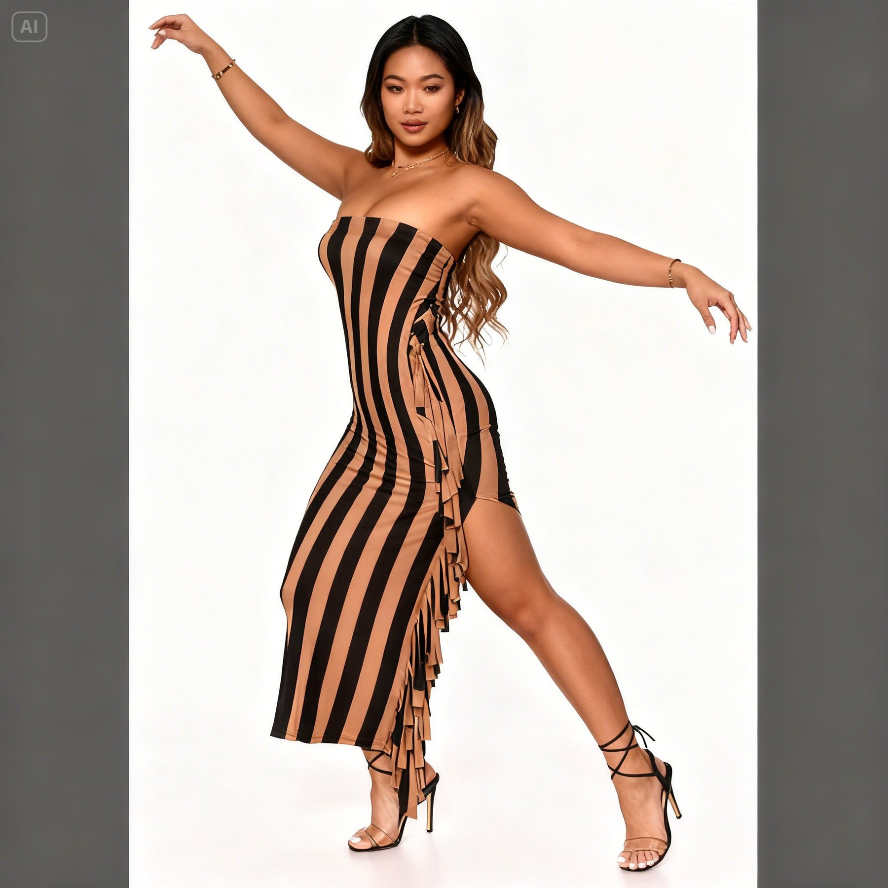 Elevate your wardrobe with our stunning Women's Tight Midi Dress, designed to make a statement on any occasion. This versatile dress features a solid color pattern, available in classic black, chic gray, or trendy stripes. With its elegant mid-length cut and sexy chest wrap style, you'll turn heads wherever you go.
