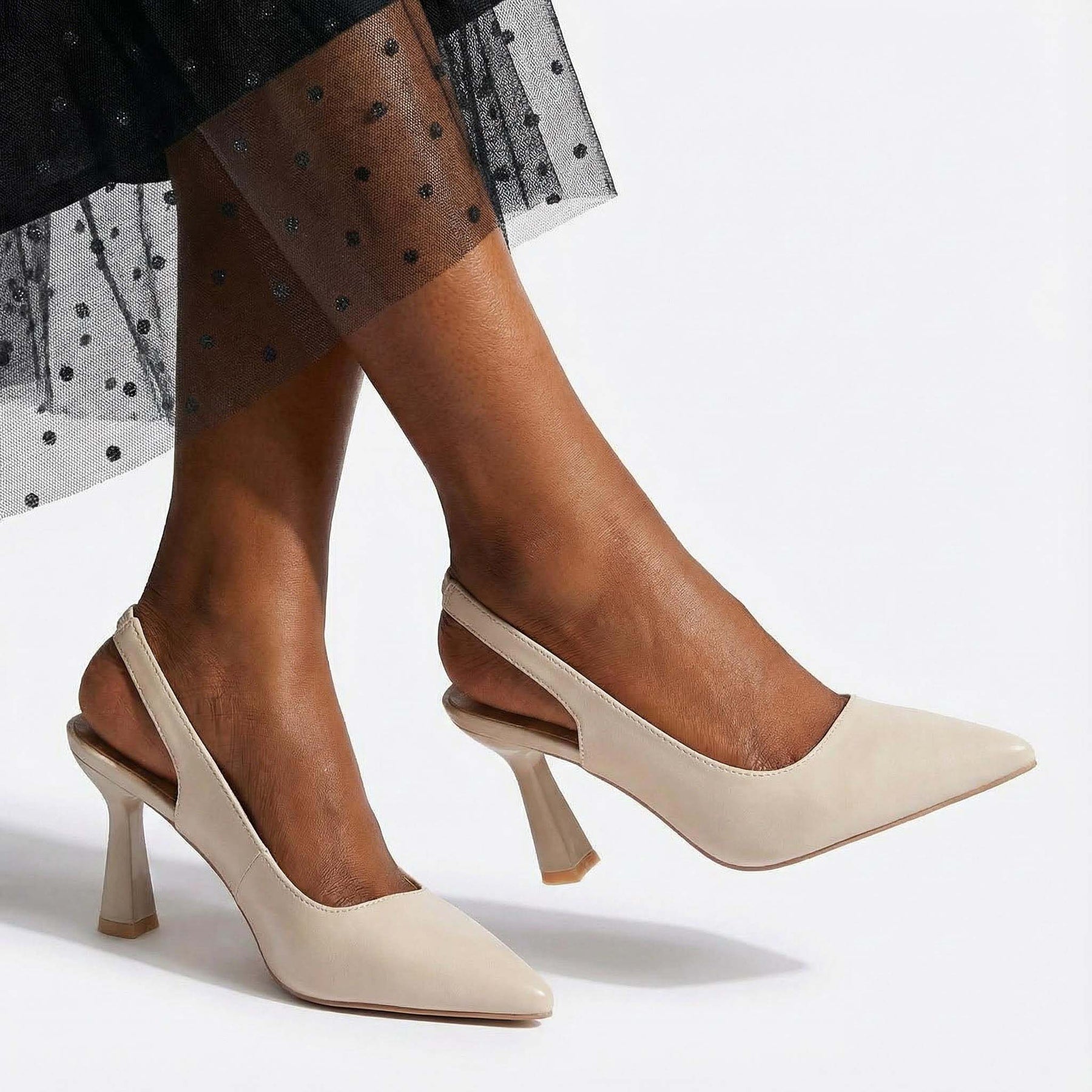 - The pointed toe and stiletto heel lengthen your leg line dramatically for powerful poses.