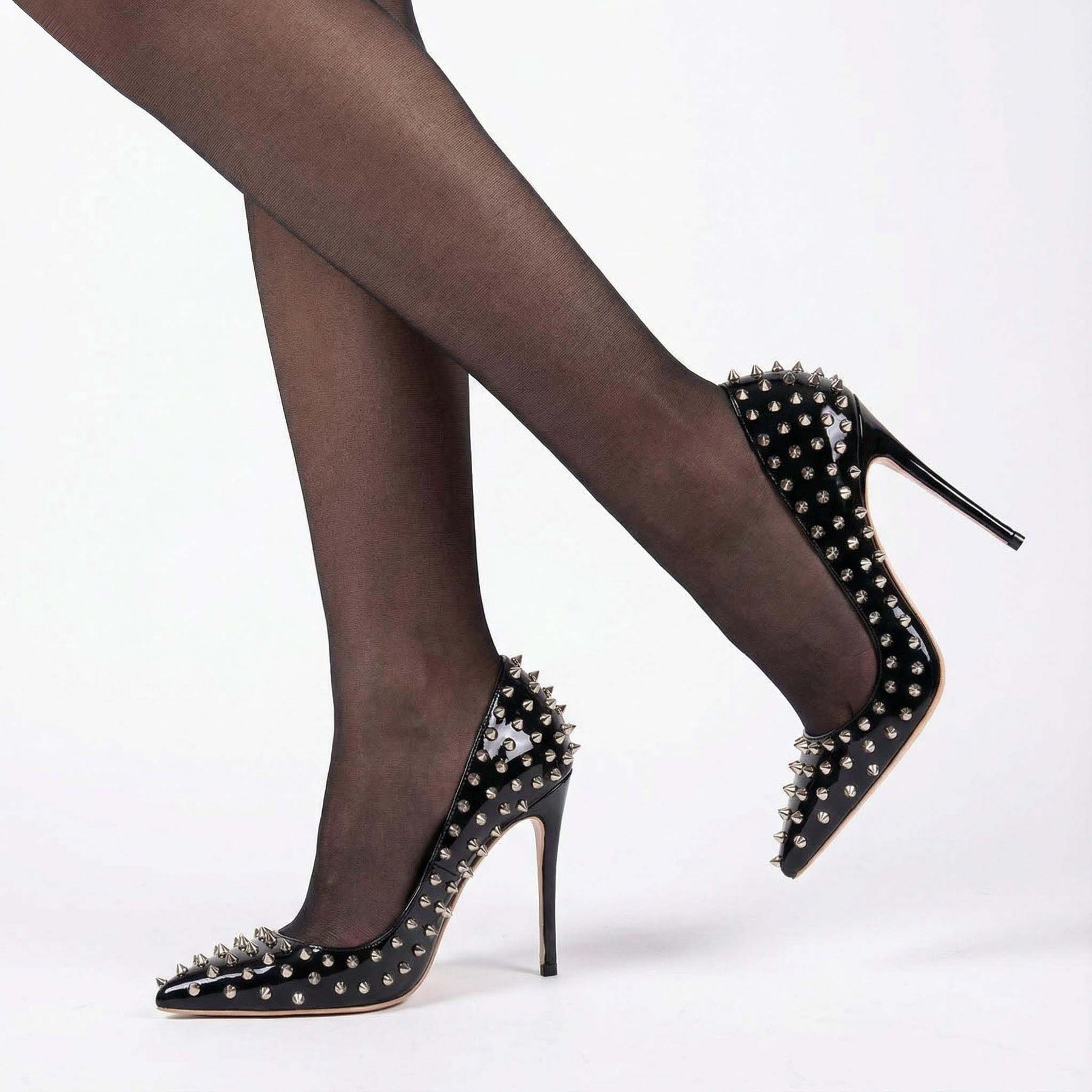 These 12CM rivet stilettos offer extreme height and a bold, powerful look for stage performances.