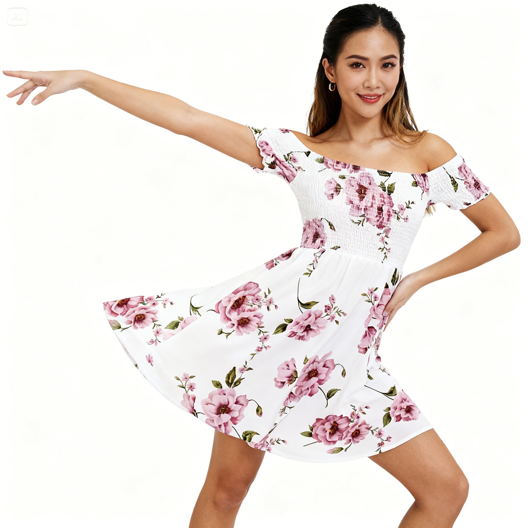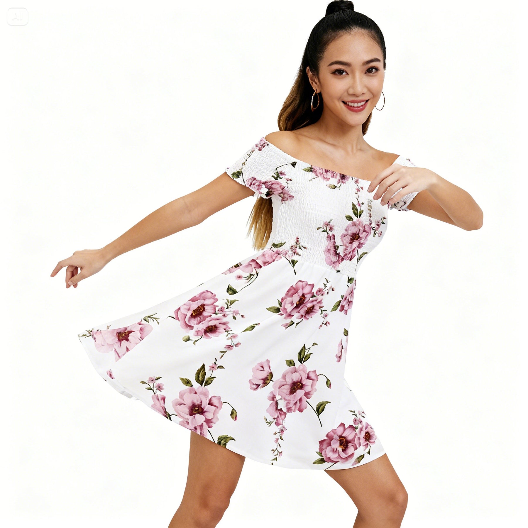 Step into style with our stunning Off-Shoulder Printed Dress. This dress is designed to make you feel confident and chic, featuring a one-word collar that showcases your shoulders beautifully, perfect for any occasion. The irregular skirt design adds a playful touch while the short sleeve style keeps it comfortable and breezy.