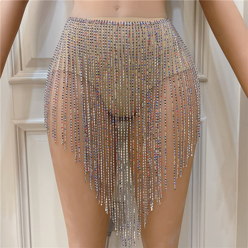Add sparkle and dramatic movement to your performance with this stunning rhinestone fringe waist chain.