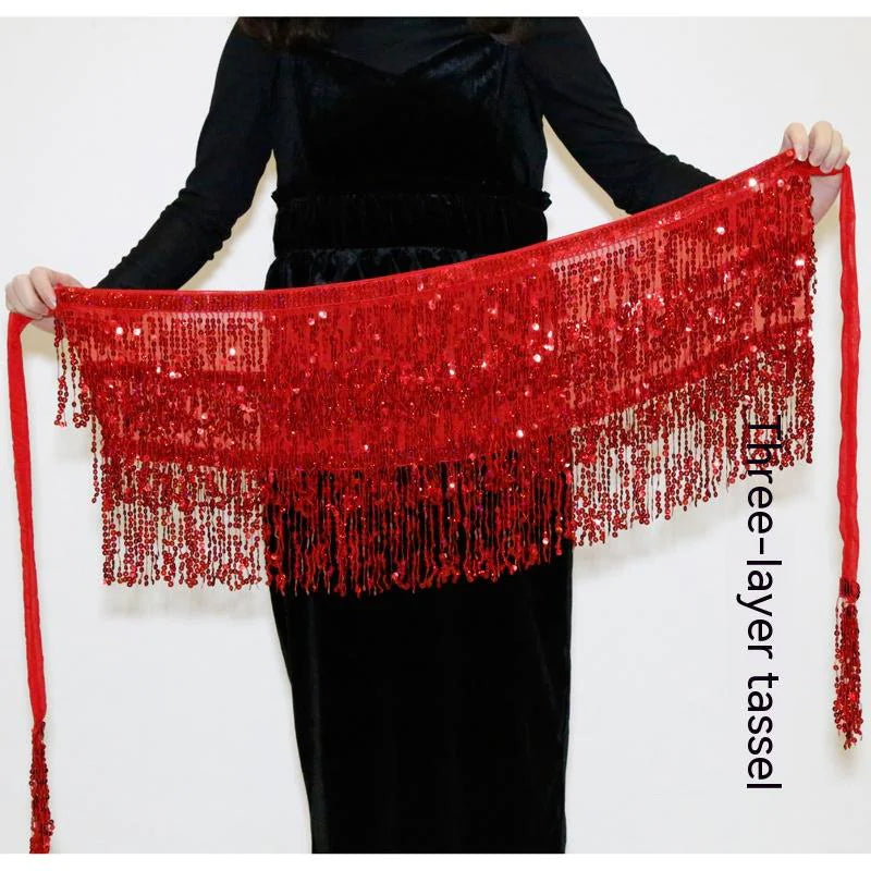 Elevate your Halloween dance ensemble with this eye-catching Spooky Sequins Belly Dance Hip Scarf. Designed to add a touch of magic and mystery, this scarf features shimmering sequins that sparkle in the light, paired with playful tassels that create dynamic movement with every sway. The lightweight, stretchy fabric ensures a comfortable fit, perfect for your belly dance performances or Halloween festivities. Whether you're shimmying under the moonlight or dancing the night away, this hip scarf will bring a hauntingly beautiful flair to your look. Ideal for costume parties, performances, or adding some festive flair to your belly dance attire!