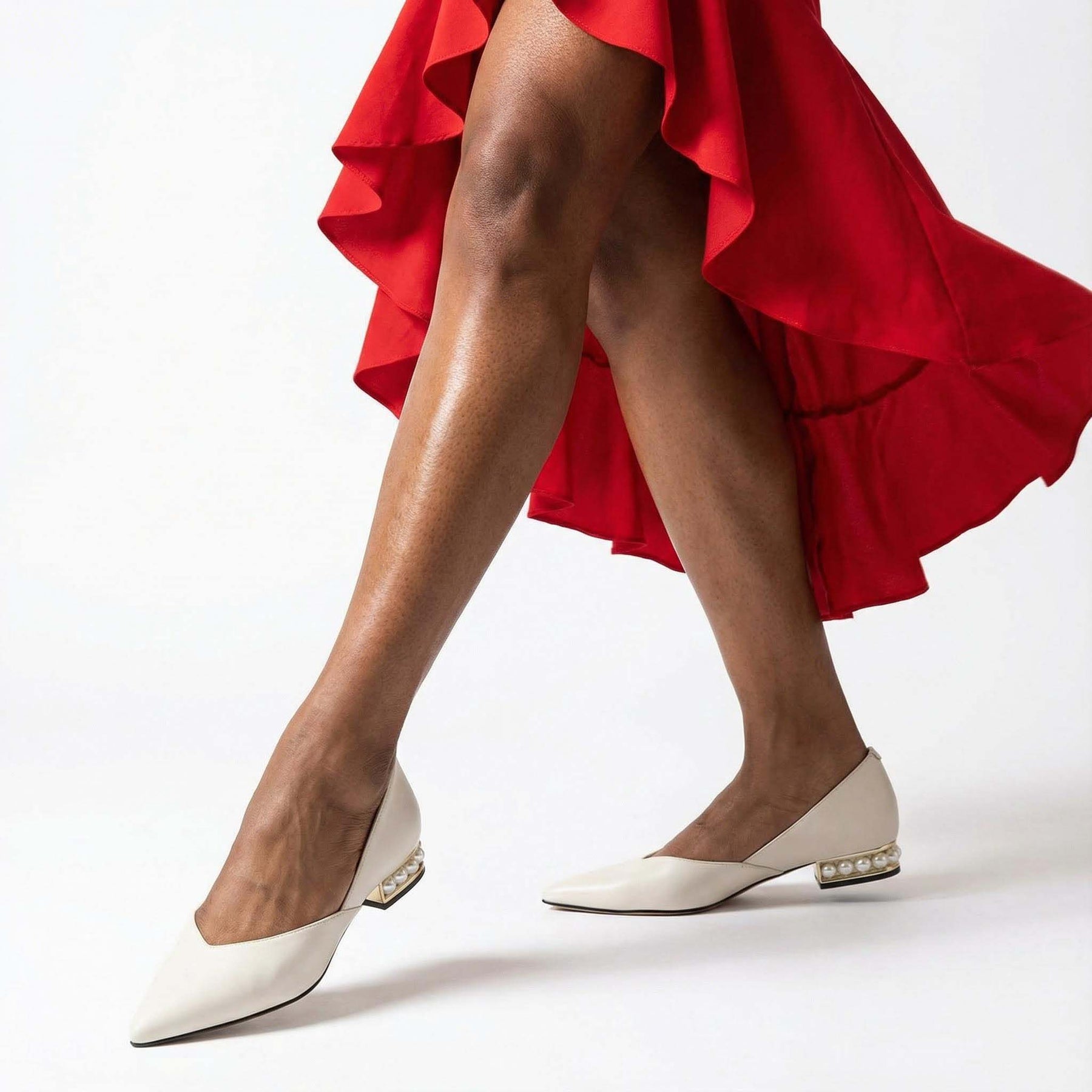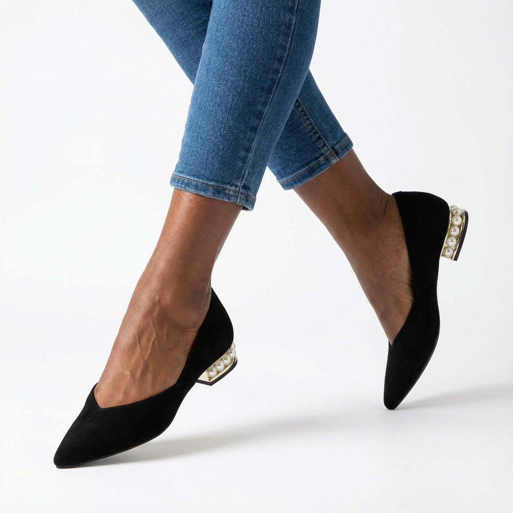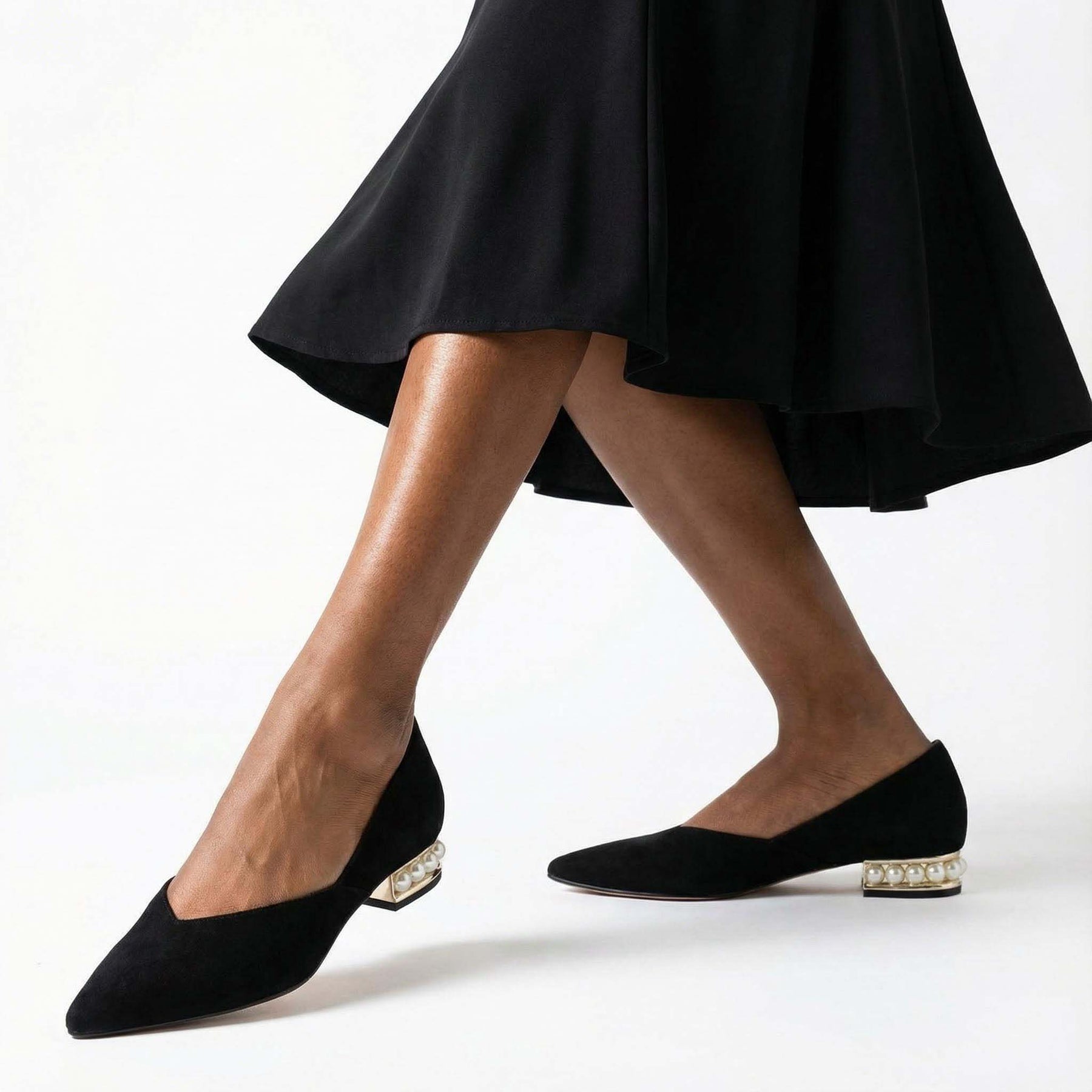 These elegant, low-heel pointed flats provide stable comfort and refined style for rehearsals and light performance.