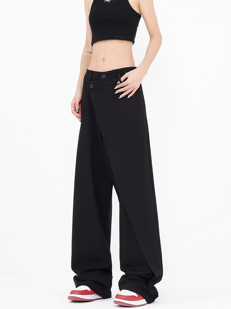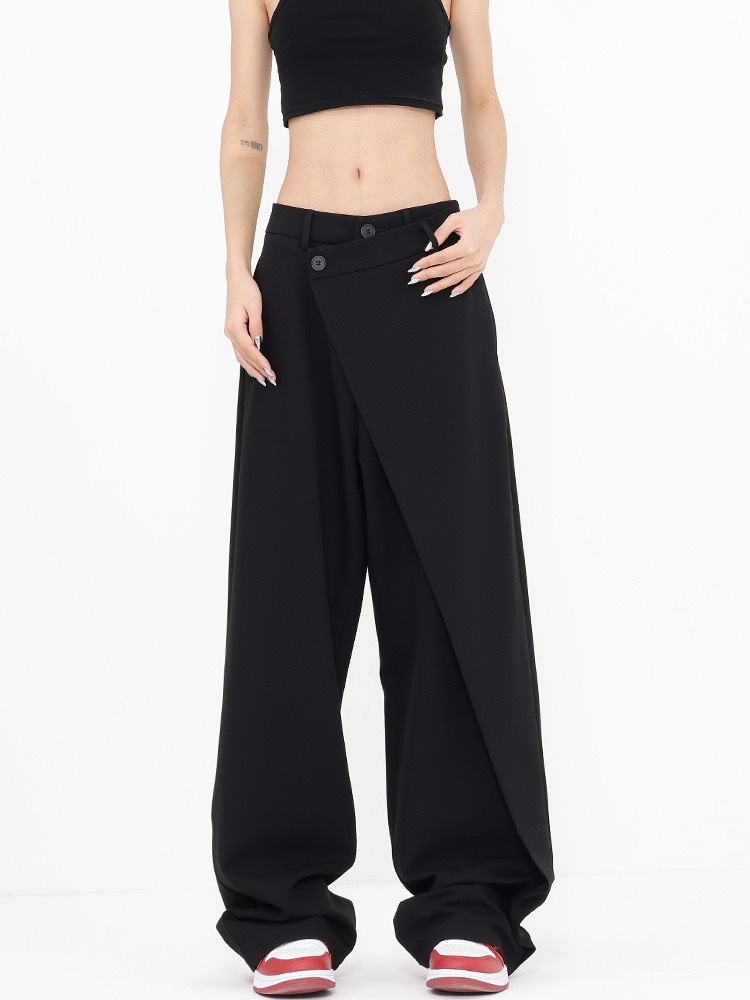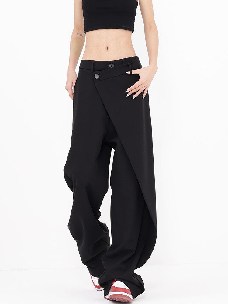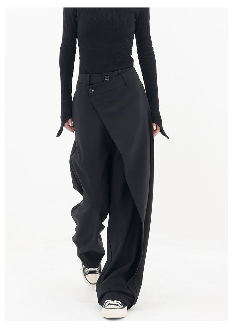 Asymmetrical Layer Button Wide Leg Dress Pants (Single Piece)
