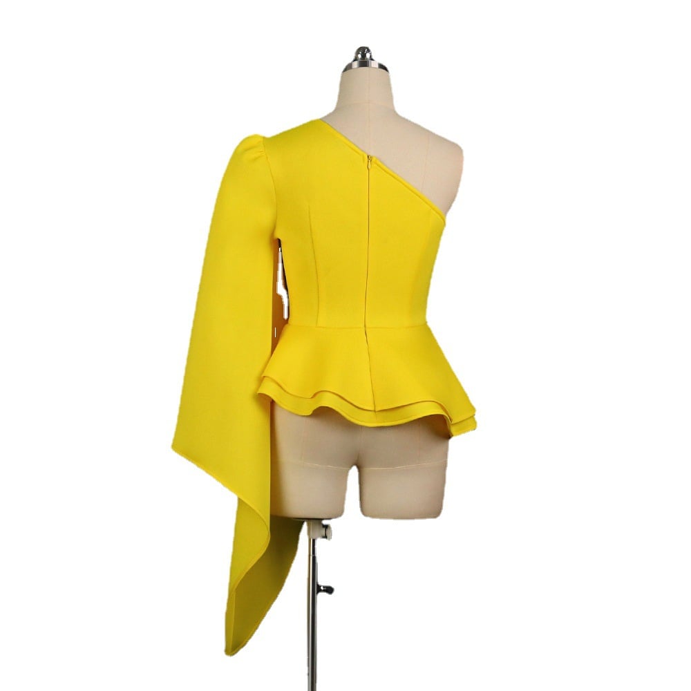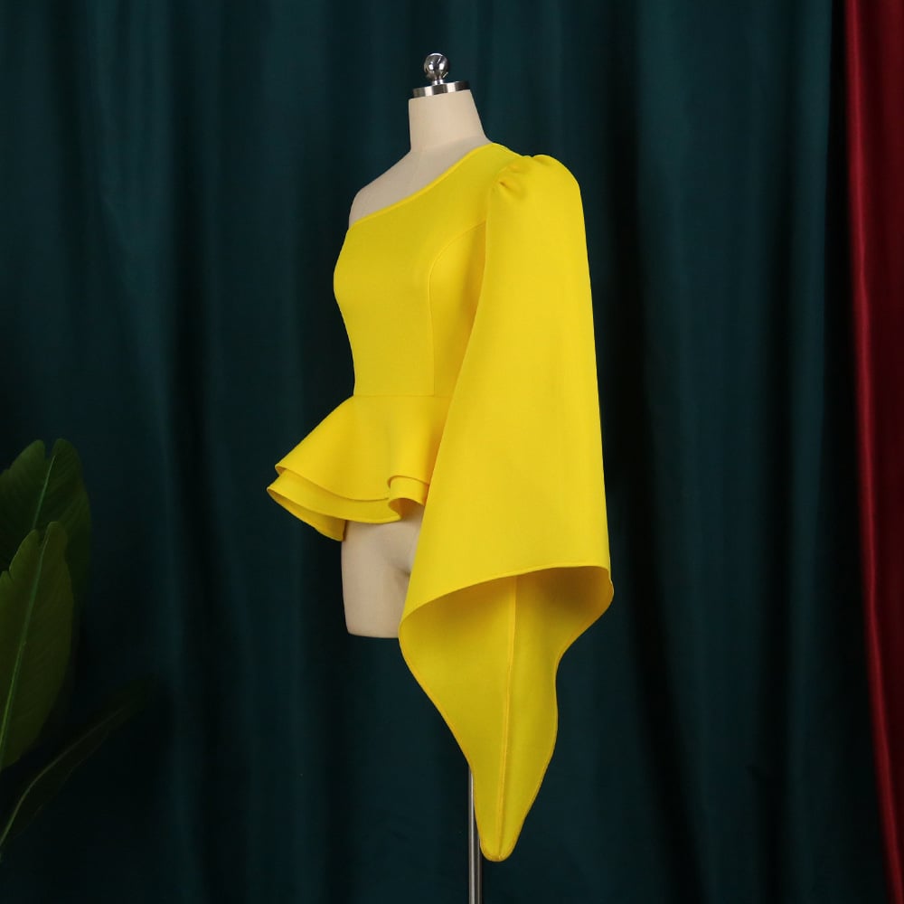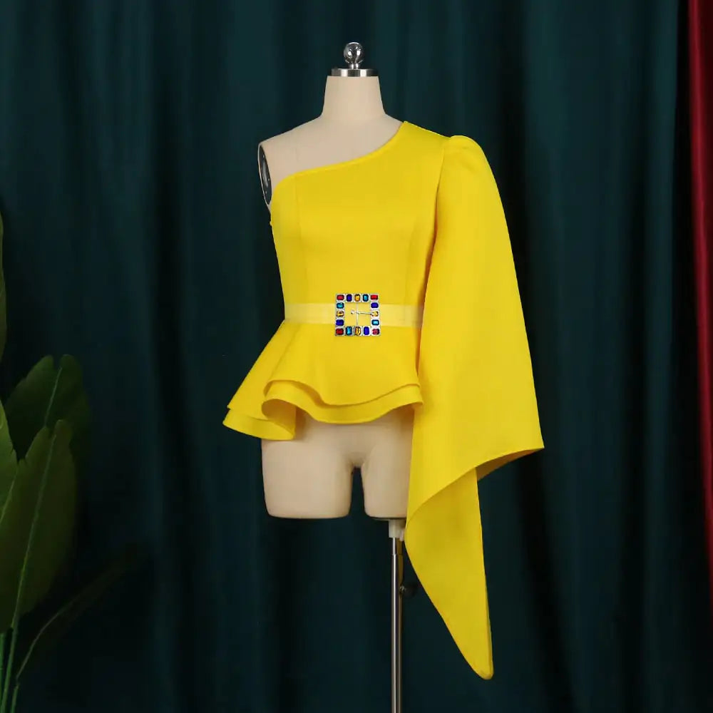 Step into the spotlight with our stunning Sloping Shoulder Back Ruffled High Waist Slim Fit Belted Party shirt, designed to turn heads and elevate your style! Crafted from high-quality polyester fiber, this shirt offers both comfort and sophistication, making it an essential addition to your wardrobe.