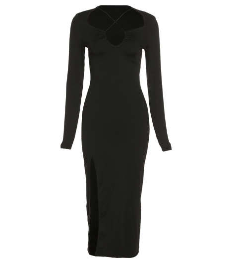 Cross Neckline Midi Party Dress with Slit (One Piece)