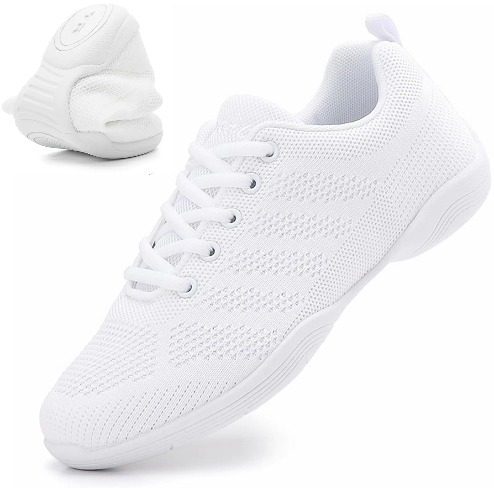 ["COMPETITION CHEERLEADING SHOE: These girls cheer shoes are specially designed for competition. The front of the cheerleading shoes is provided with an anti-collision toe cap which can reduce the impact of the front and the side consolidates the upper to reduce the unfavorable sliding in sports. The rear support sole provides strong support and more protection for heel strikes." SURPRISING ULTRA LIGHTWEIGHT: Our cheer shoes are incredibly lightweight and stylish they are not clunky and heavy as most womens cheer shoesAndthey would rather it be lighter than a feather. Low profile and lightweight cheer shoe for easier stuntstumbling and jump COMFORTABLE STRUCTURAL DESIGN: Low-profile design/soft breathable upper and mesh tonguesecure fit that adjust to arch height.The upper breathable design also helps manage heat and swelling. Integrated lacing systembreathable and comfortable Lininglet the foot bent more comfortable FLEXIBLE & ANTI-SLIP DURABLE SOLE: Flexible training shoes offers excellent all-round support allowing quick and easy movement while creating a sense of security. Soft non-slip Lightweight outsole that will stand up through tough routinesexercise is more comfortable and sport without restriction MULTIFUNCTIONAL SHOES: Versatile comfortable sneaker shoeshigh performance cheerleading shoes that are designed specifically for athletes. Fashionable and Casual design for many occasions and make your feel comfortable. Suitable for cheerleading football baby dancing work fitness dance leisure tennis volleyball running shopping walking outdoor travel art examination...]