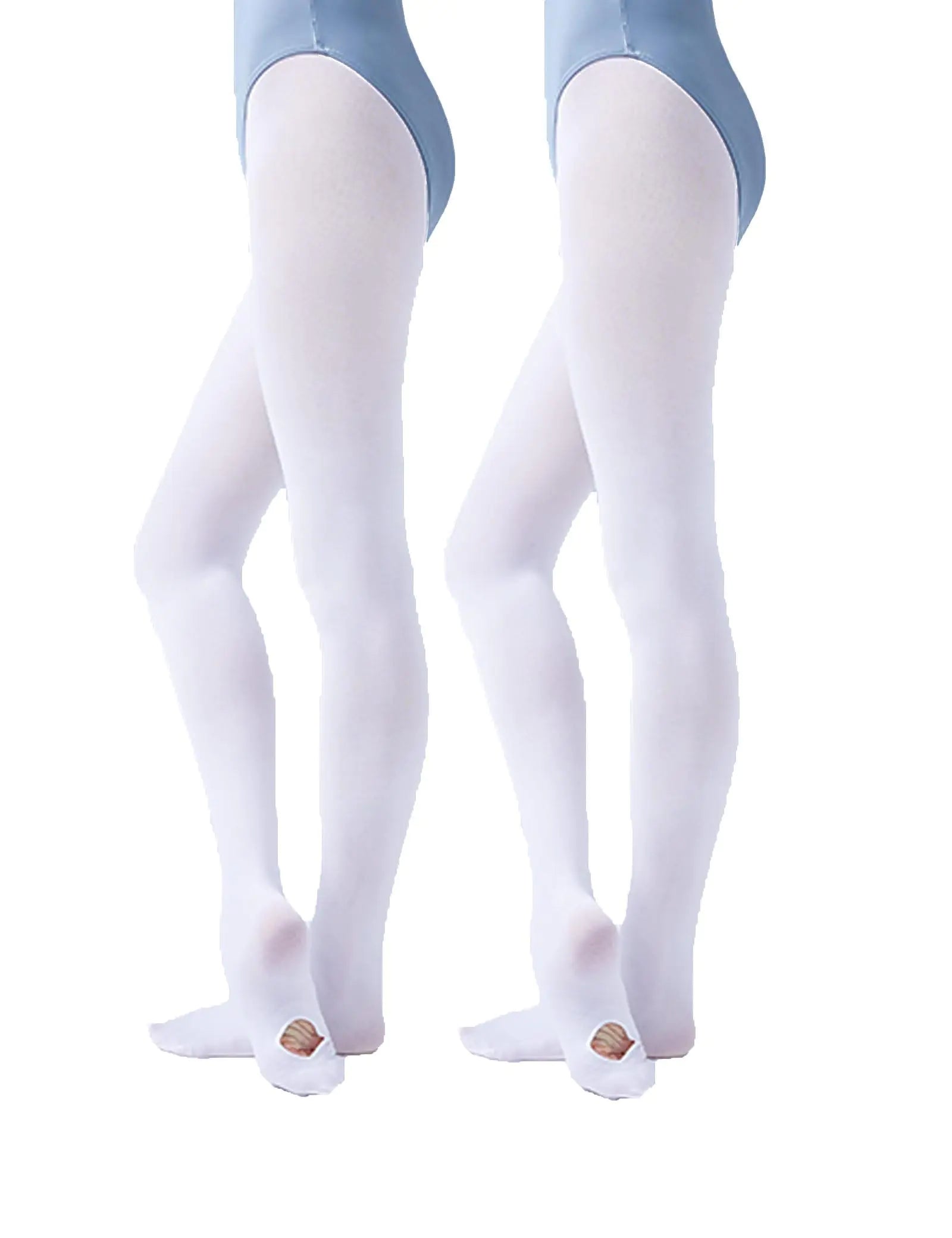Daydance White Girls Transition Tights Footed Ballet Covnertible Tights for Dance Gymnastics Under Dress 60D 2 Packs