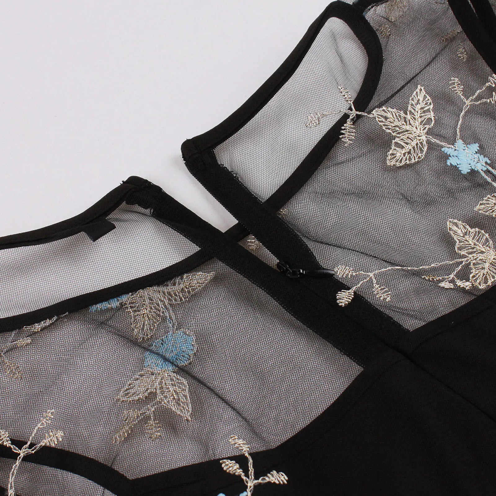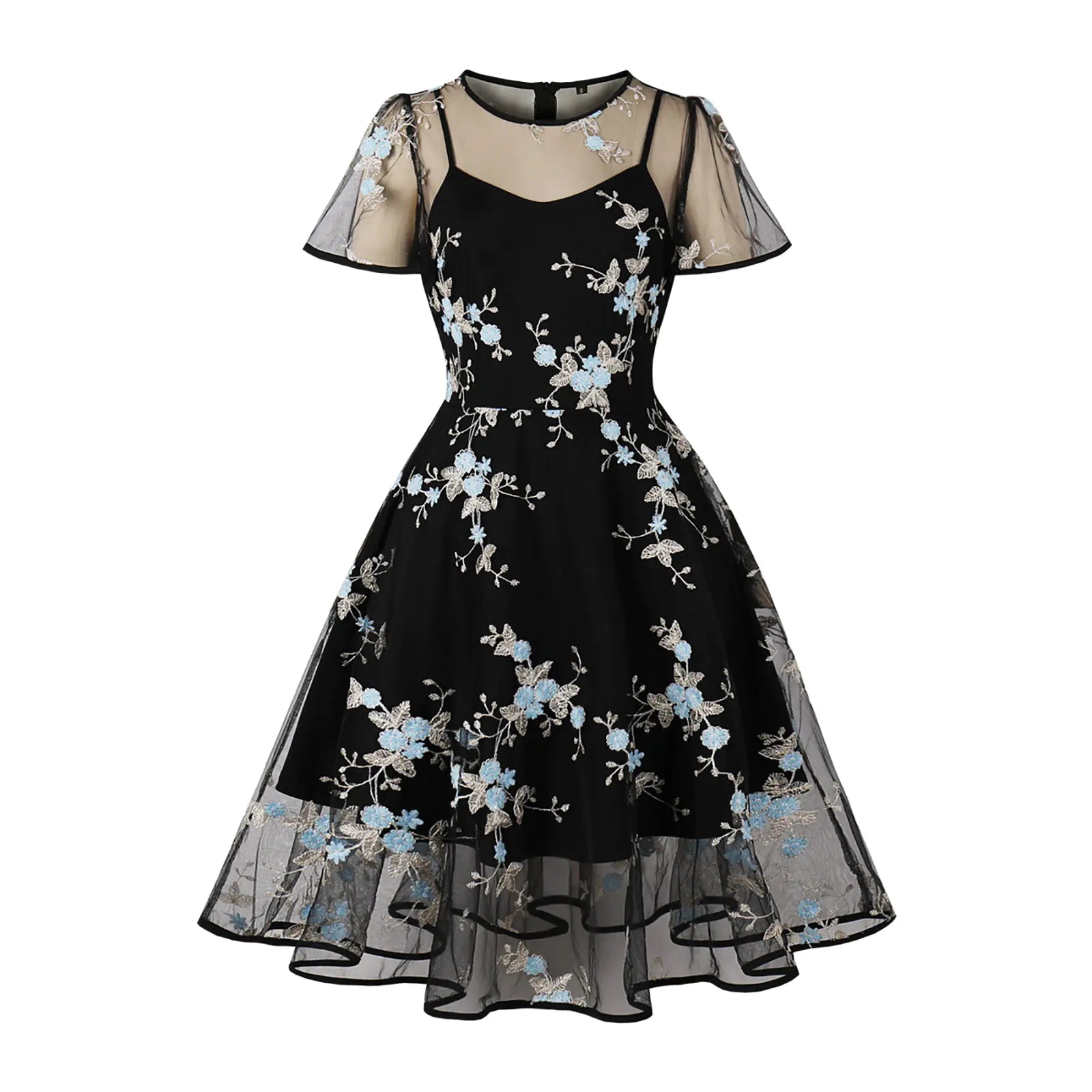 Elegant 1950s Embroidered Mesh Retro Party Dress