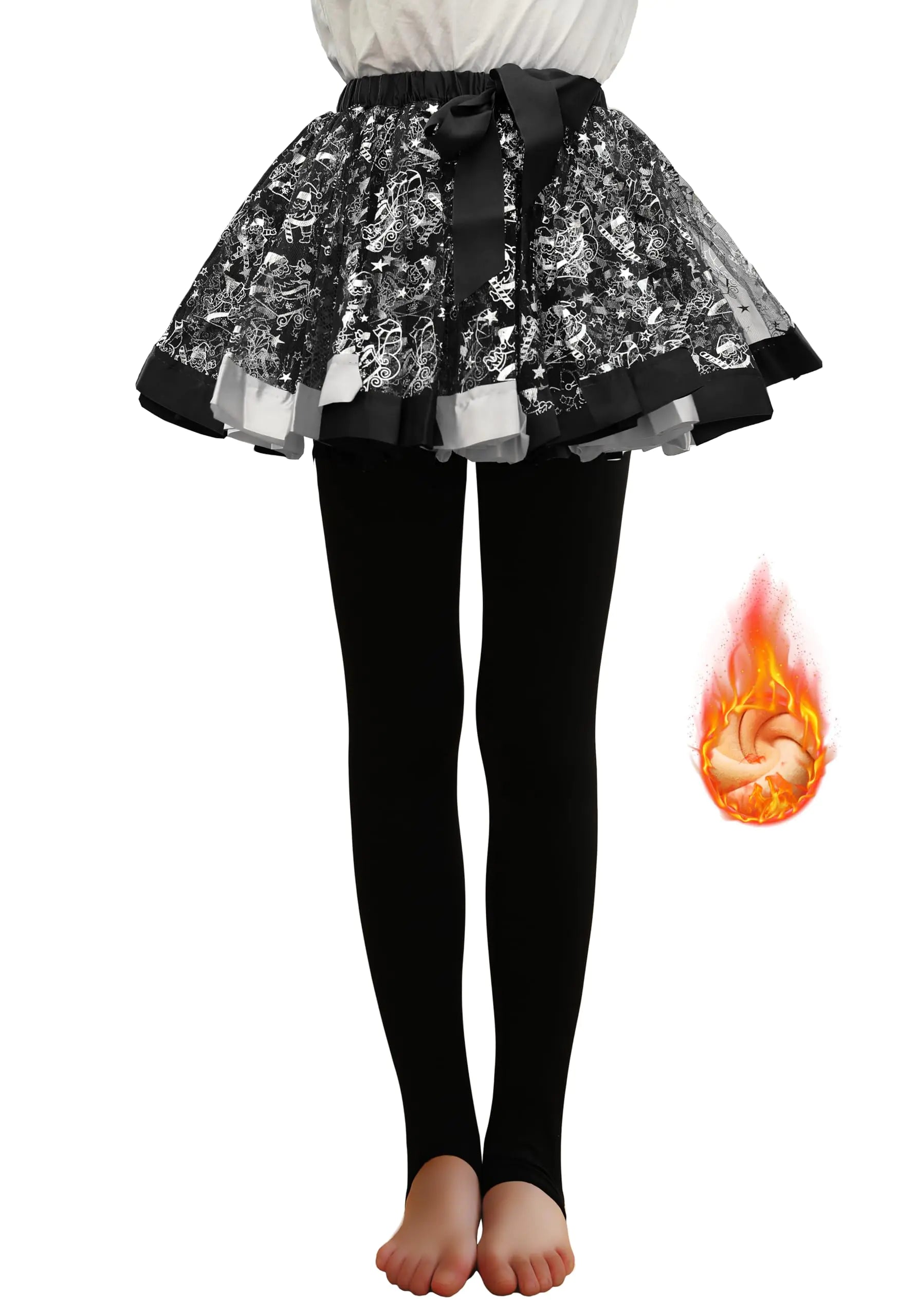 FANCAME Fleece Lined Ballet Tights for Girls Toddler Thermal Footed Dance Tights Warm Thick Microfiber Cozy Stockings (US Age 8 Years 11 Years Black-Stirrup)