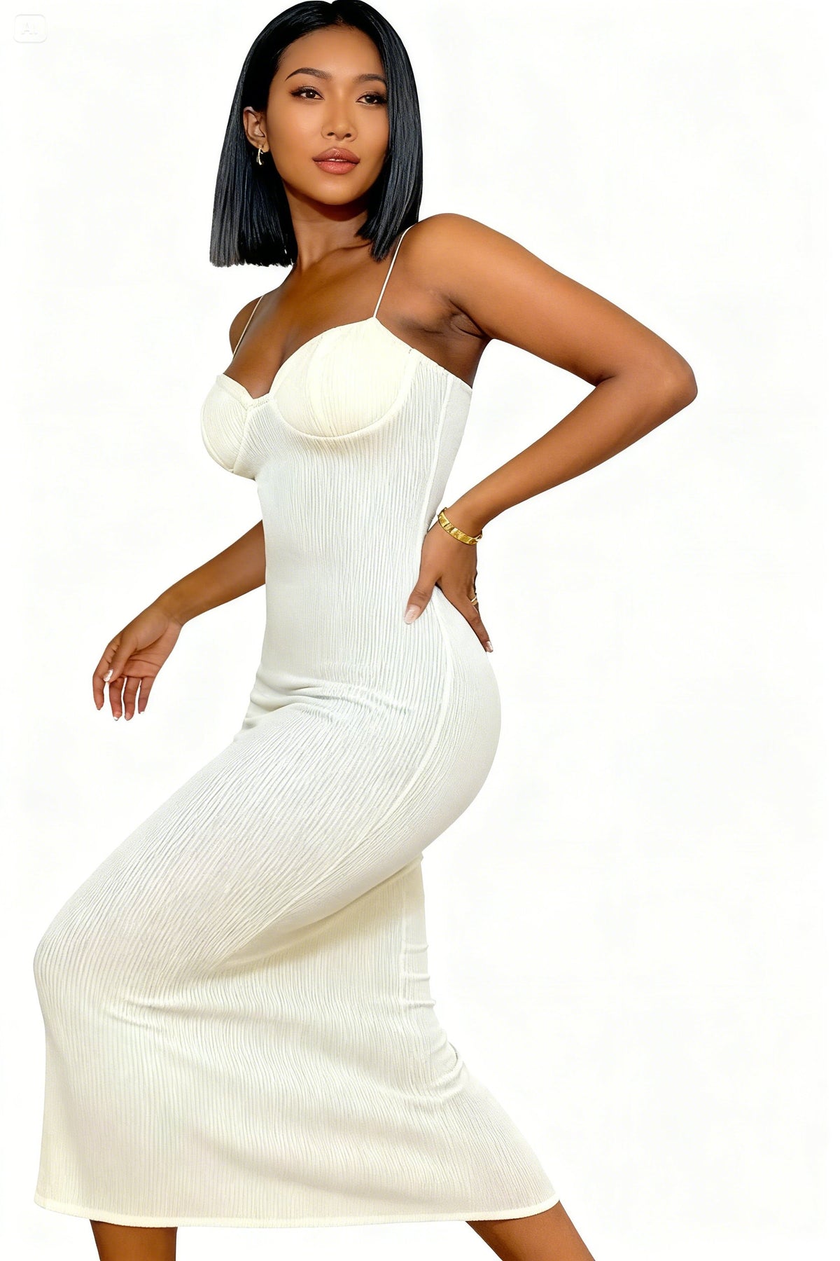 Crafted from high-quality polyester fiber, the dress promises both comfort and durability. The knit texture hugs your curves in all the right places, ensuring a flattering silhouette that will turn heads. Choose from three elegant sizes: S, M, and L, all available in a timeless white hue that complements any skin tone.