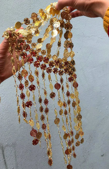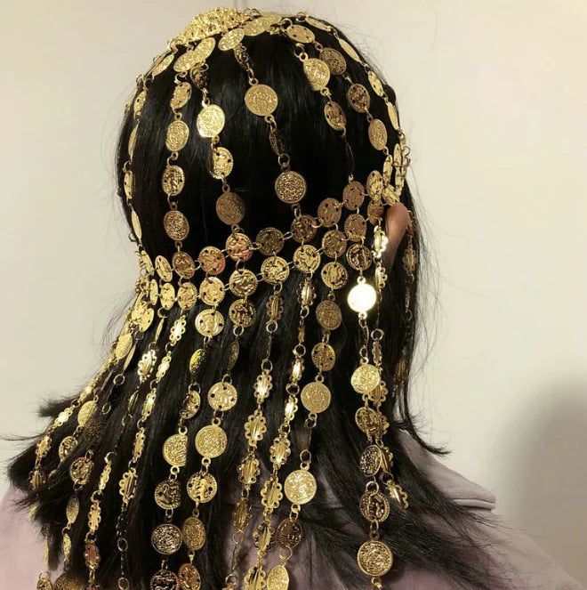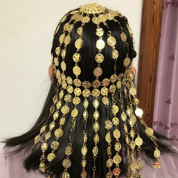 Unleash your inner dancer with our stunning Long Section Belly Dance Metal Headdress Stage Hat. Crafted from high-quality alloy, this exquisite cap is designed to elevate your performance and capture the audience's attention. Its solid color design in a striking gold hue adds a touch of elegance and sophistication, making it the perfect accessory for any dance performance or festive occasion, especially on Children's Day.