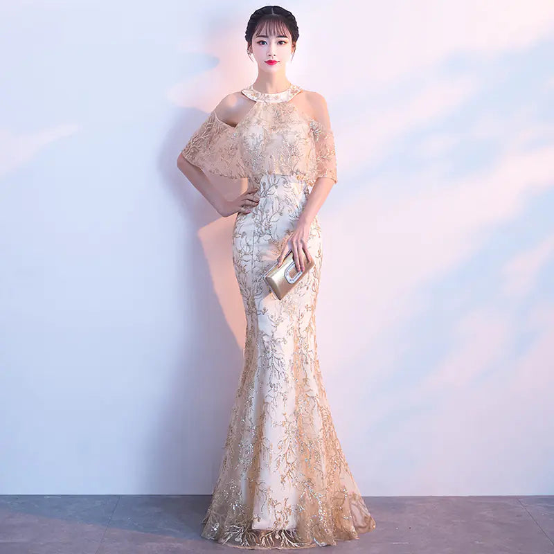 Available in a variety of stunning colors including Golden Umbilicus, Champagne Color, Light Champagne, Golden Neck, and Jade Powder, this dress is tailored to suit every taste. Choose your perfect size from XS to XL to ensure the ideal fit.
