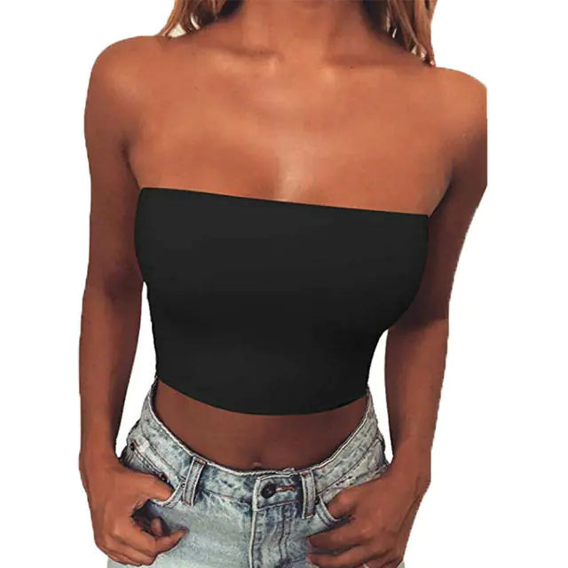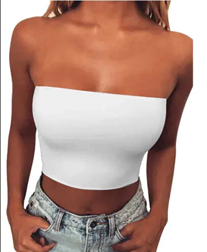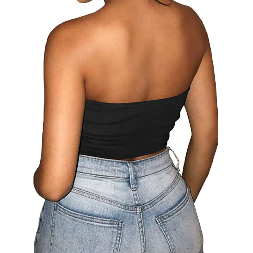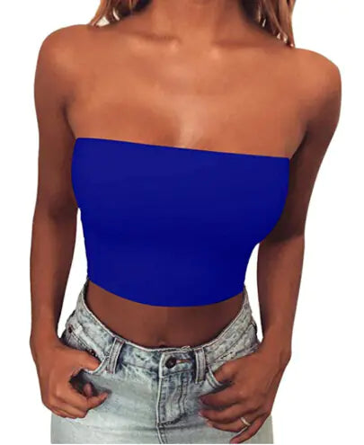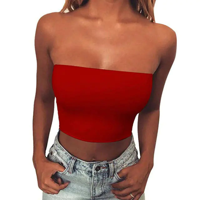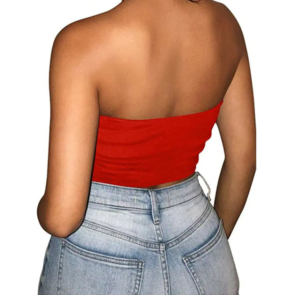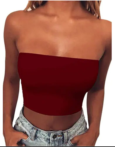 With a chic strapless design that beautifully showcases your shoulders, it's perfect for pairing with your favorite high-waisted jeans or a skirt for a night out or casual day. Available in a variety of eye-catching colors including Black, Blue, Orange, Red, White, Yellow, and Wine Red, you can choose the perfect shade to match your personality and wardrobe.