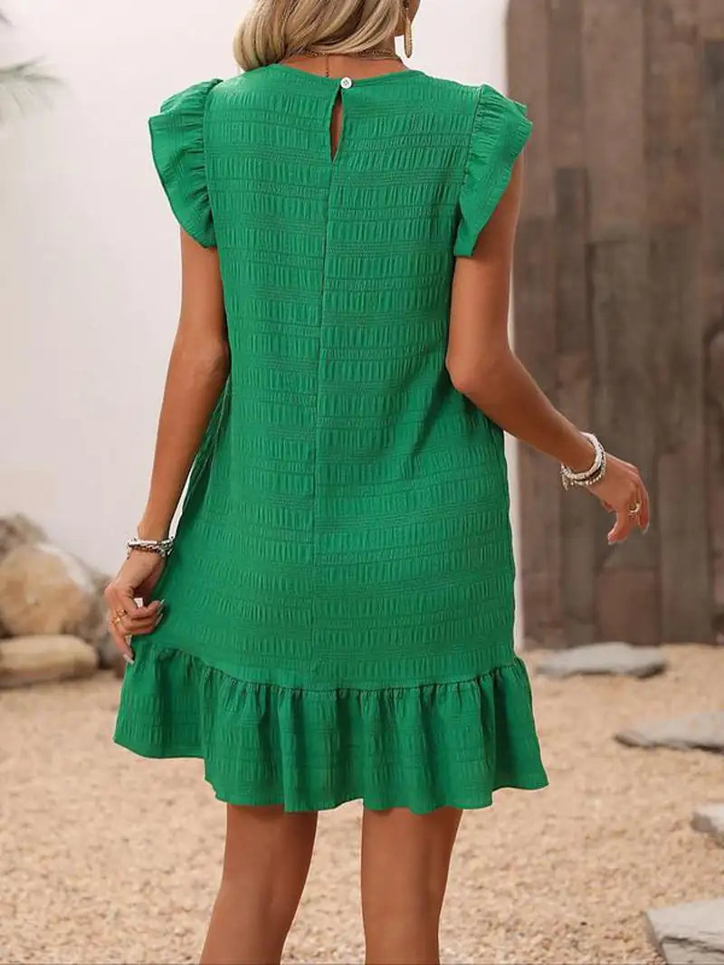 Women'S Plain Ruffle Trim Cut Out Smock Dress, Boho Textured Butterfly Sleeve round Neck Short Dress for Summer, Ladies Clothes for Beach Holiday